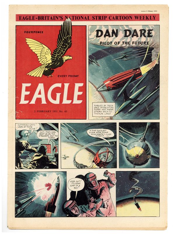 Vol. 1 #43 - Feb. 2, 1951. Contents include Dan Dare, P.C. 49, Riders of the Range, Eagle Cutaway centerfold, Skippy the Kangaroo, The First Man To..., Curious Creatures, Harris Tweed Extra Special Agent, The Great Adventurer. Plus text stories and articles. 10 1/2-in. x 14 1/2-in., 16 pages, B&W and full color.