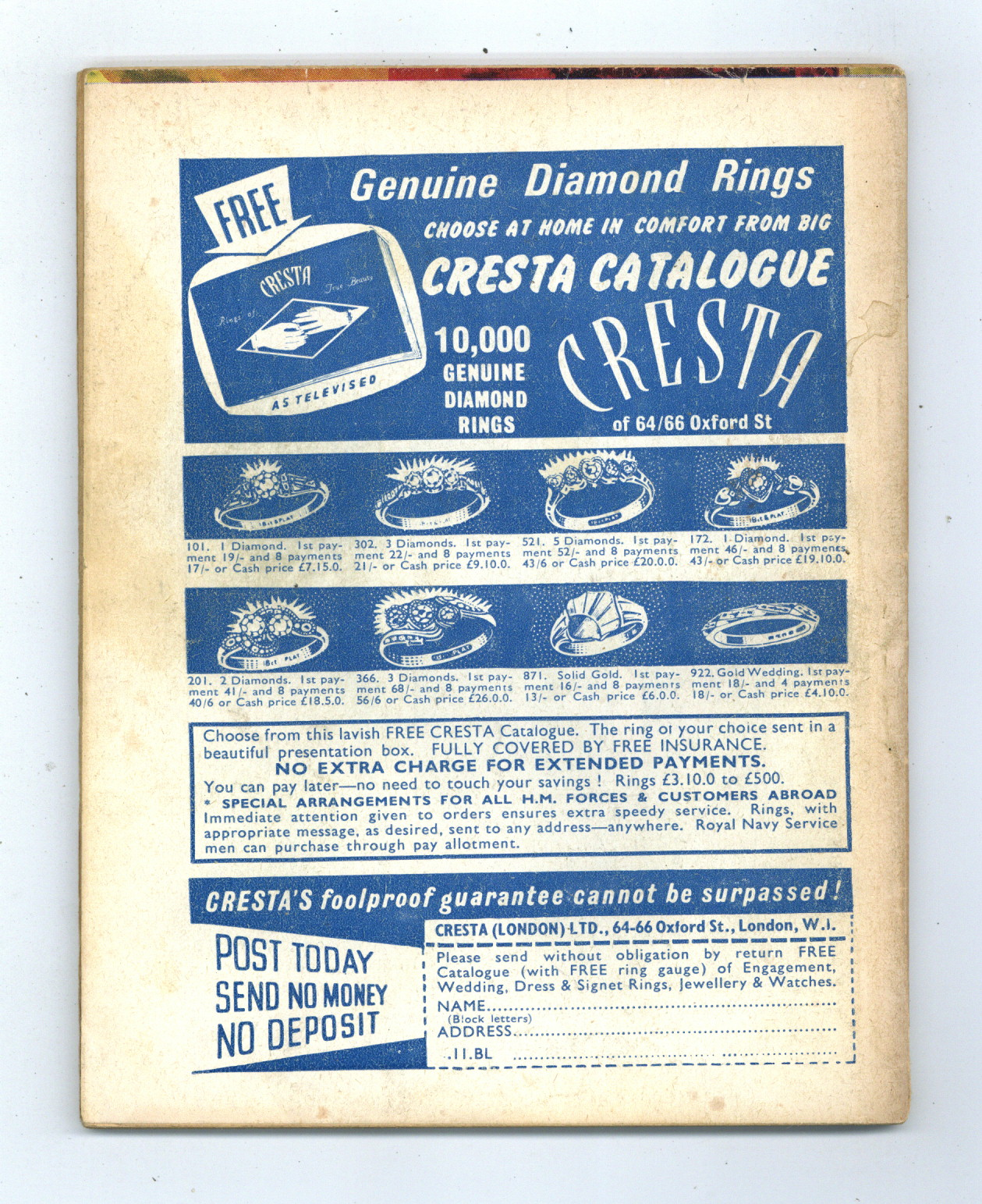 Published 1967 (est.) by IPC/Fleetway.$12.00- spine break large crease back spine roll Back cover detached 5%. Staple rust: Slight.