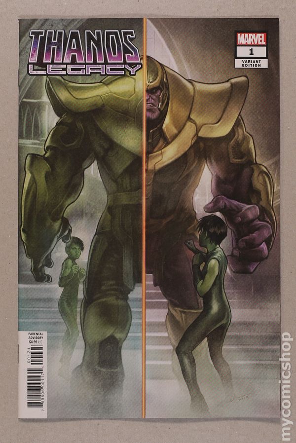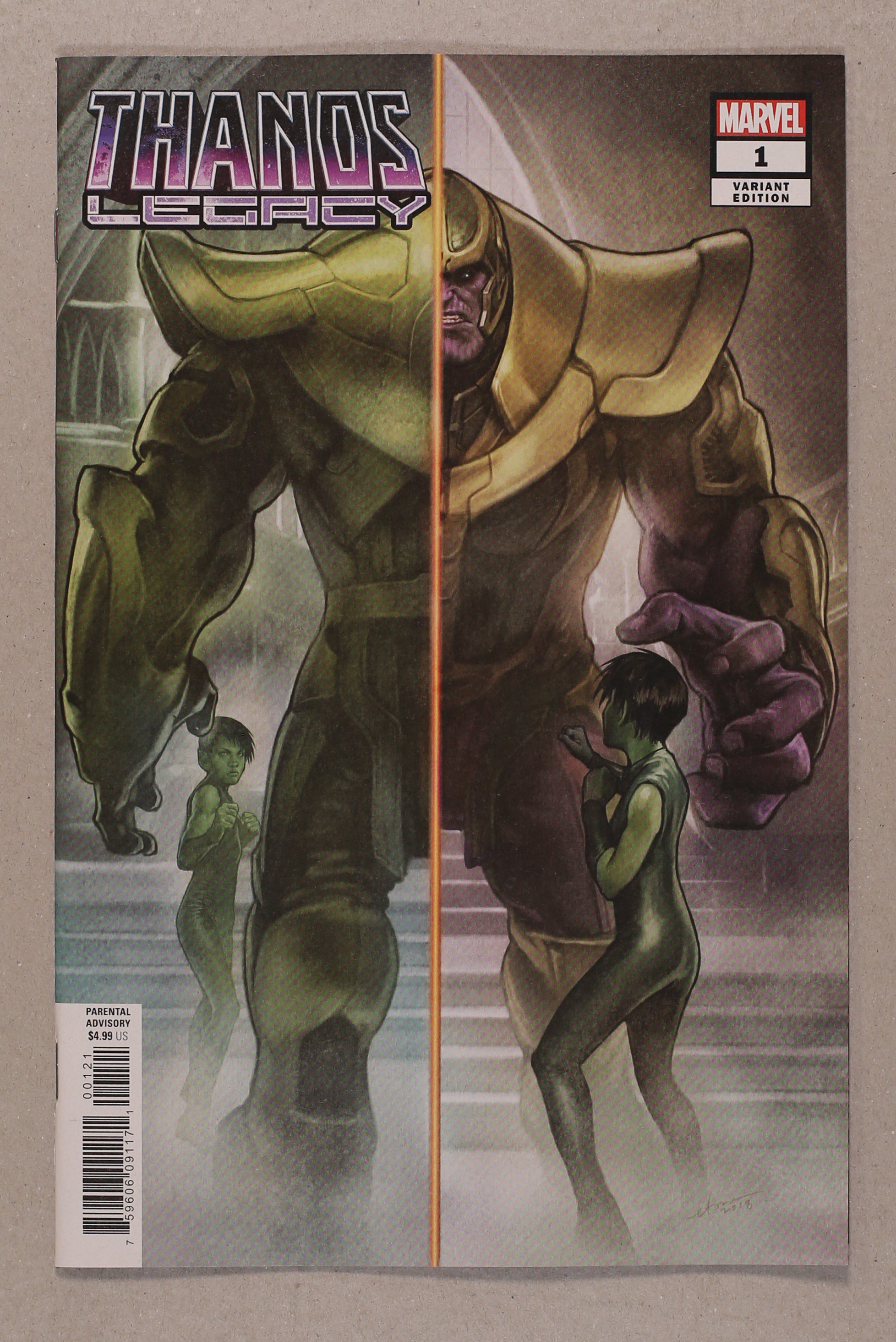 Tags: Supervillain, Thanos$5.00Limited 1 for 25 Retailer Incentive Variant Cover. Written by Donny Cates and Gerry Duggan. Art by Brian Level, Jordan Boyd, and Cory Smith. Cover by Stonehouse. 'THANOS WINS'…AGAIN? Rising star Donny Cates returns to the Mad Titan to bring the story bridging the gap between his best-selling 'Thanos Wins' and the world-shattering INFINITY WARS! How did Thanos' journey back from the future lead to the events of INFINITY WARS PRIME? Now it can be told! 36 pages, full color. Rated T+ Cover price $4.99.