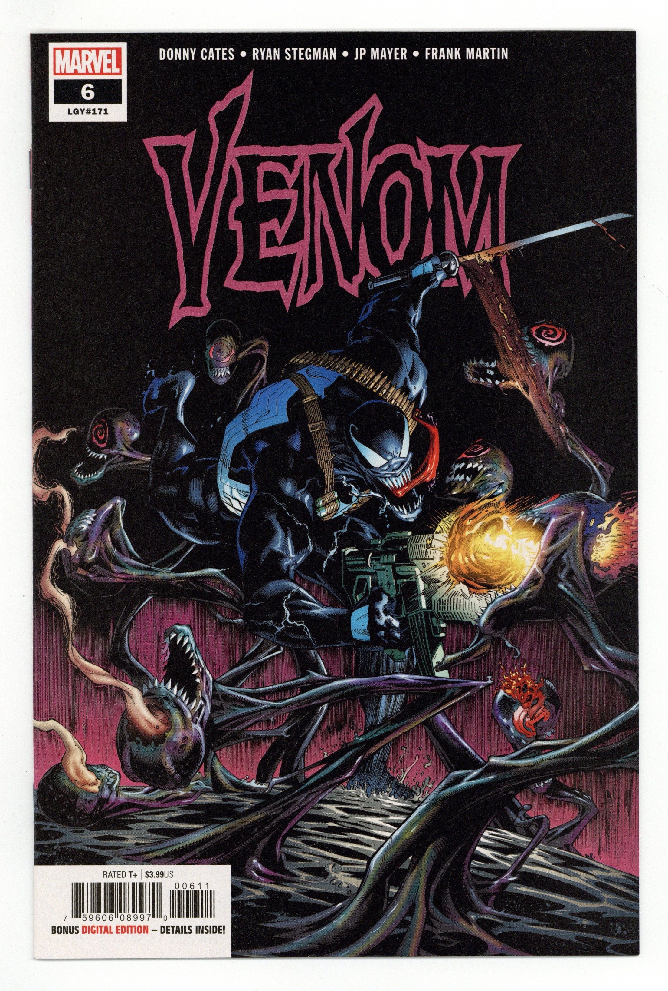 Tags: Marvel Legacy Numbering: Venom (part 171)$15.00Written by Donny Cates. Art by Ryan Stegman. After a brief connection to the GOD-HOST, EDDIE and the VENOM symbiote have emerged with brand new powers! A good thing too, as they'll need every upgrade they can get as they head down a collision course with the primordial symbiote GRENDEL! Rated T+ Cover price $3.99.