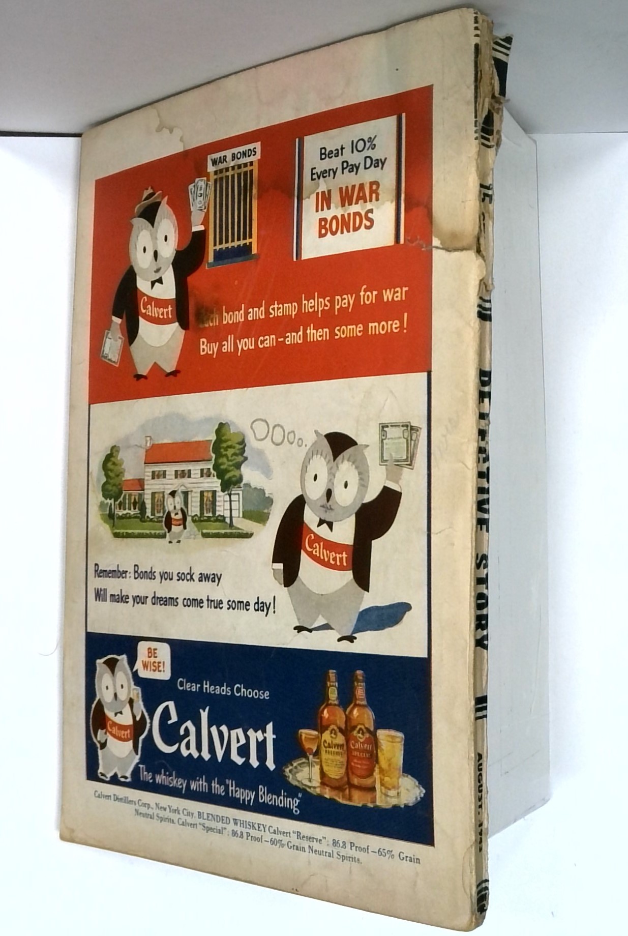 - Front cover detached 25%. Back cover detached 30%. Water damage: Moderate. Staple rust: Slight.