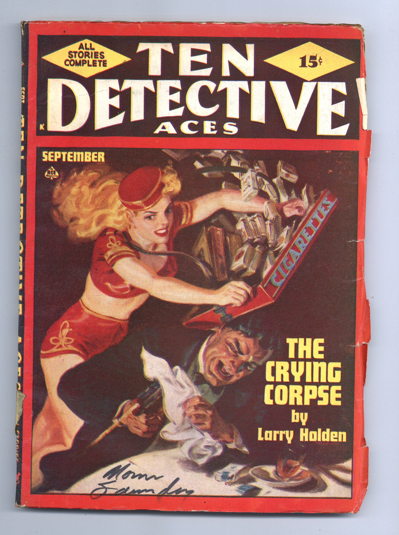 Vol. 55, No. 4 - September 1948. Cover by Norman Saunders. Ten Detective and mystery stories by W. T. Ballard "Ruckus in Reno", Joe Archibald, Roy Sparkia, Carl Memling, Larry Holden, Monty Craven, Joseph Commings, and Robert S. Fenton. 7" x 9 1/2"; black and white; 96 newsprint pages. Cover price $0.15.