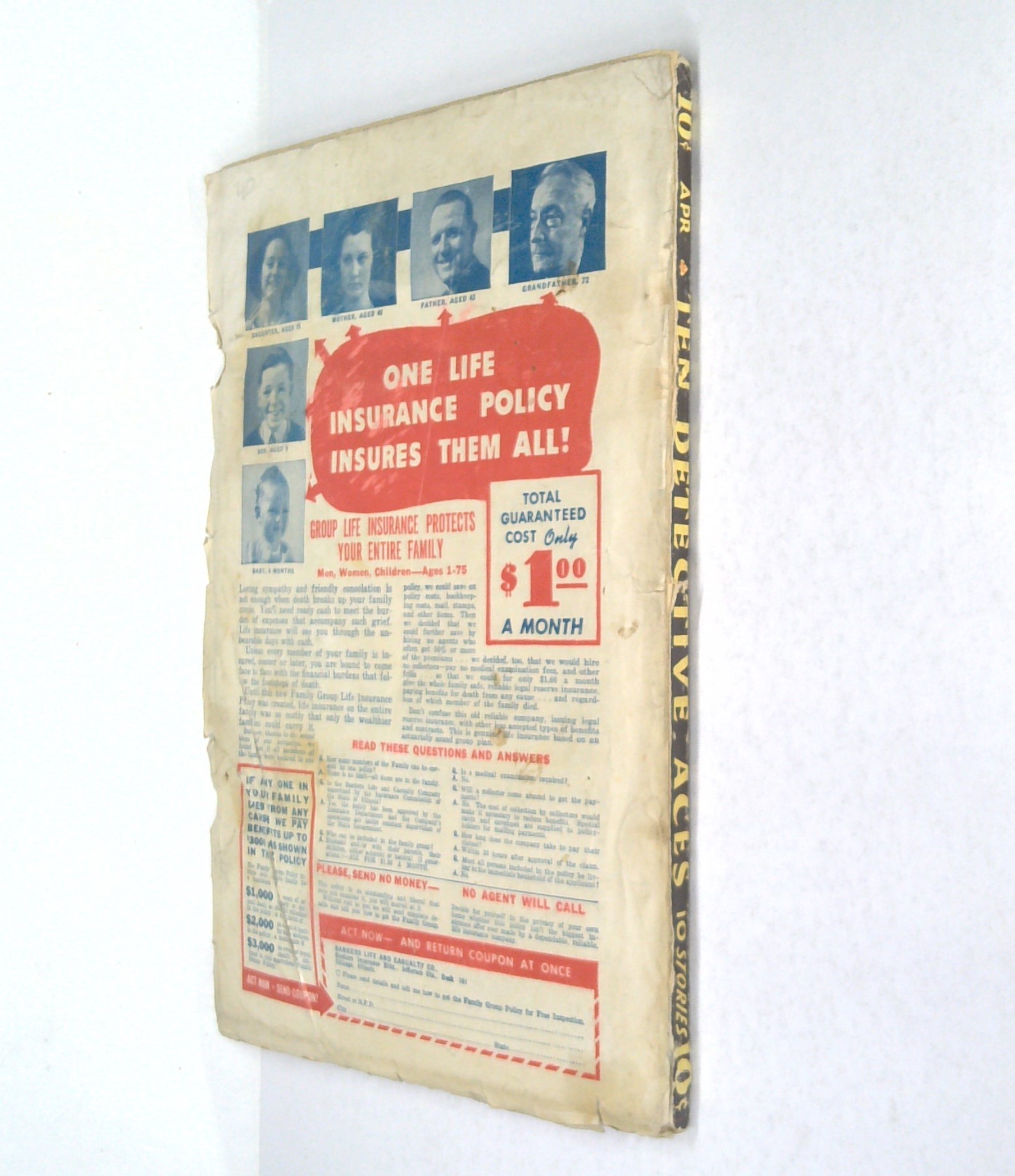 Published Apr 1940 by Ace Magazines.$97.00Vol. 38, No. 2 - April 1940. 6.75" x 9.75", 112 pages, B&W. Cover price $0.10.