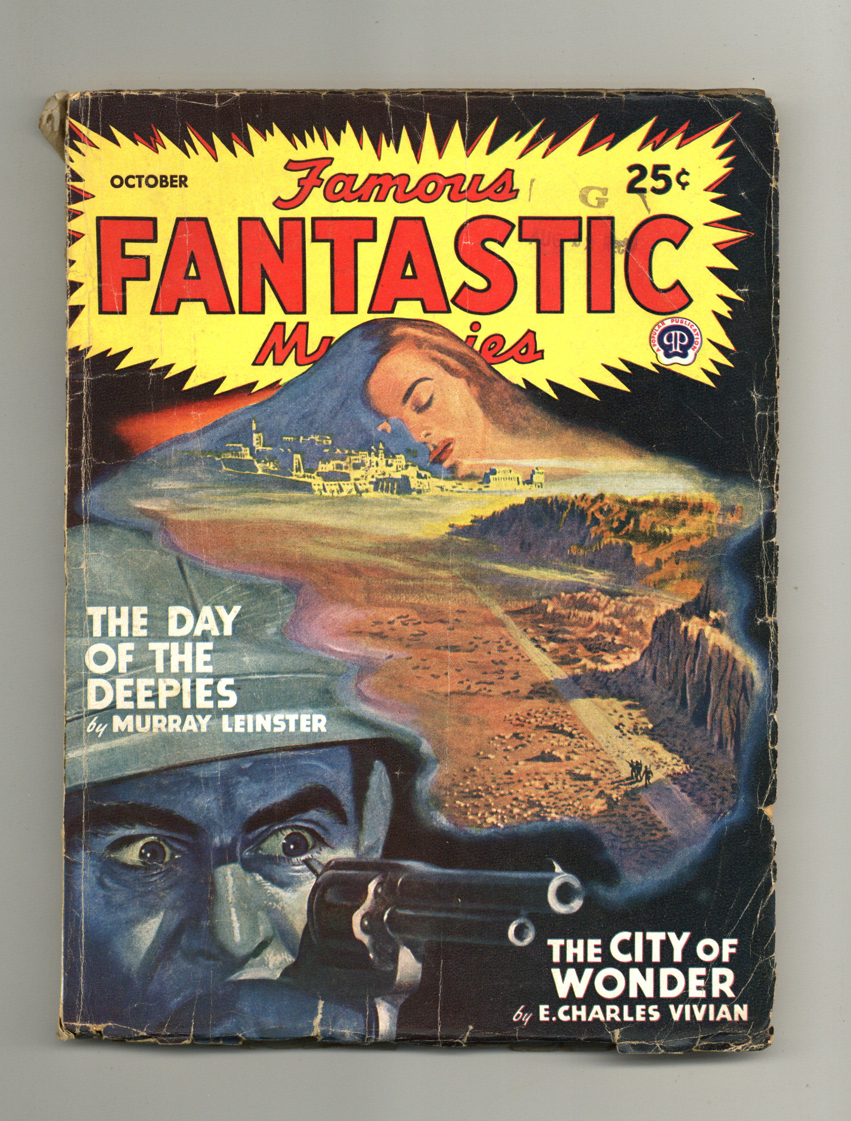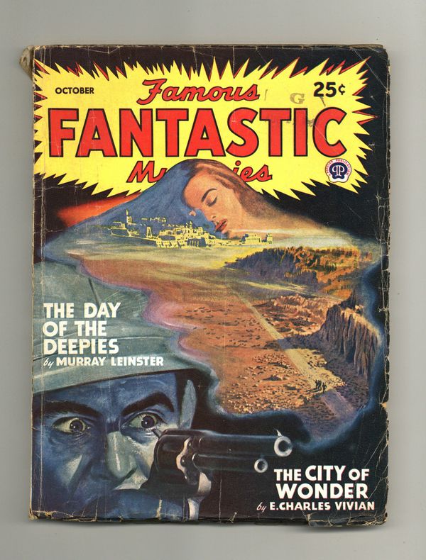 Volume 9, Issue 1 - October, 1947. "The City of Wonder" by E. Charles Vivian, "The Day of the Deepies" by Murray Leinster, and other short stories. Interior illustrations by Finlay, Bok, and Napoli. 7-in. x 9 1/2-in.; black and white; 134 newsprint pages. Published by Popular Publications Cover price $0.25.