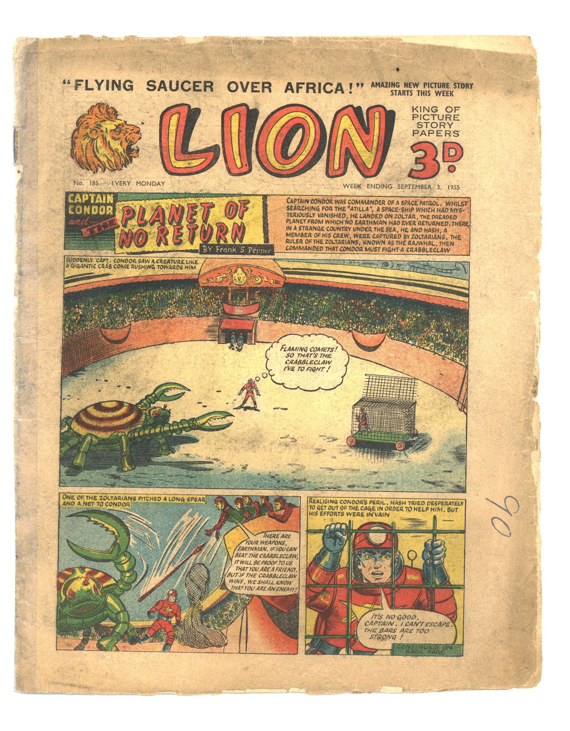 Published Sep 1955 by Amalgamated Press.$15.00- Spine split 5%. Cover Detached. Water damage: Moderate. Staple rust: Moderate. Foreign edition: UK.
