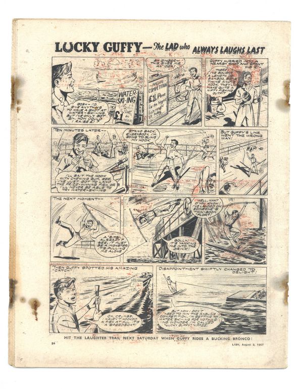 Published Aug 1957 by Amalgamated Press.$16.00- Spine split 10%. Cover Detached. Staple rust: Extensive.