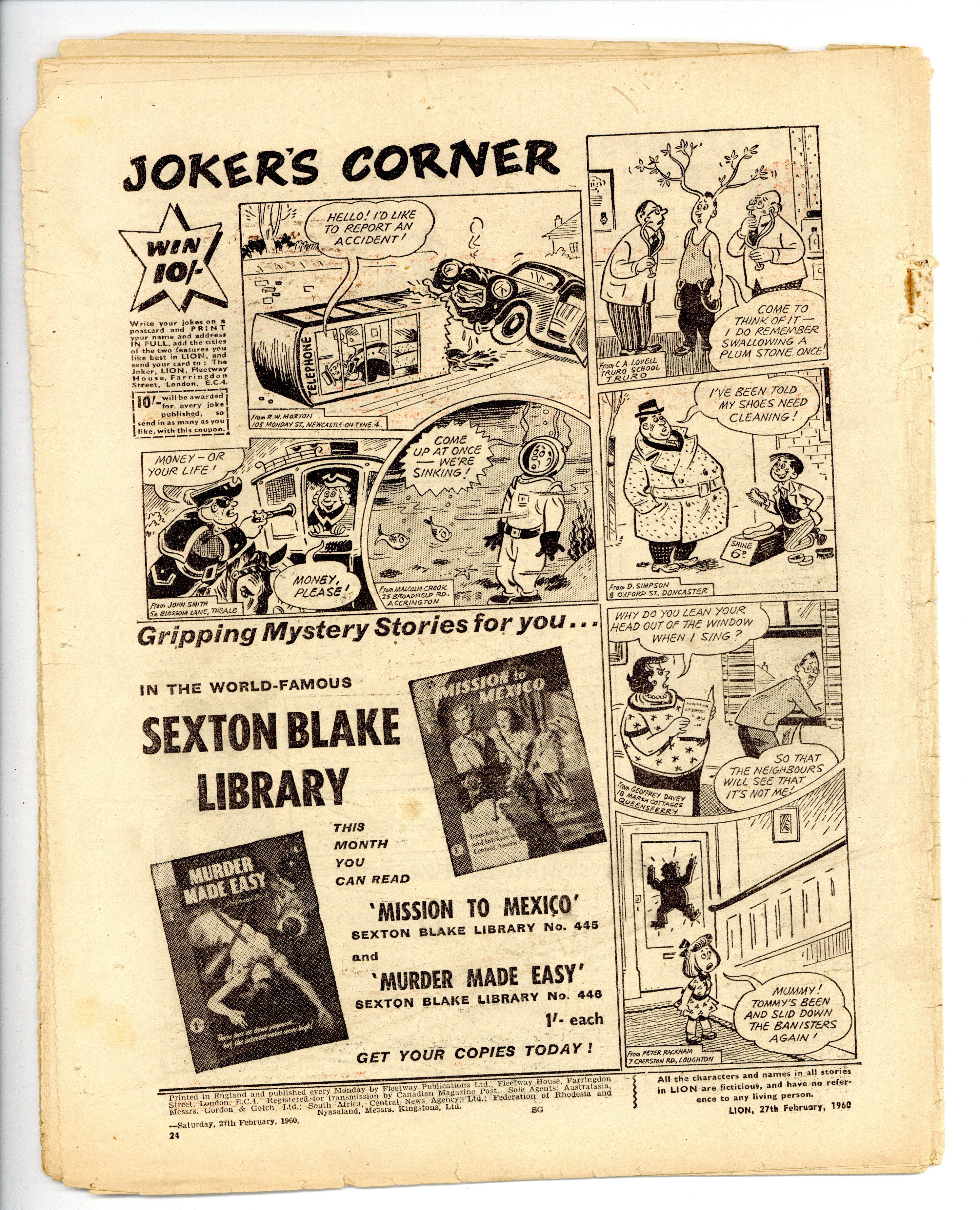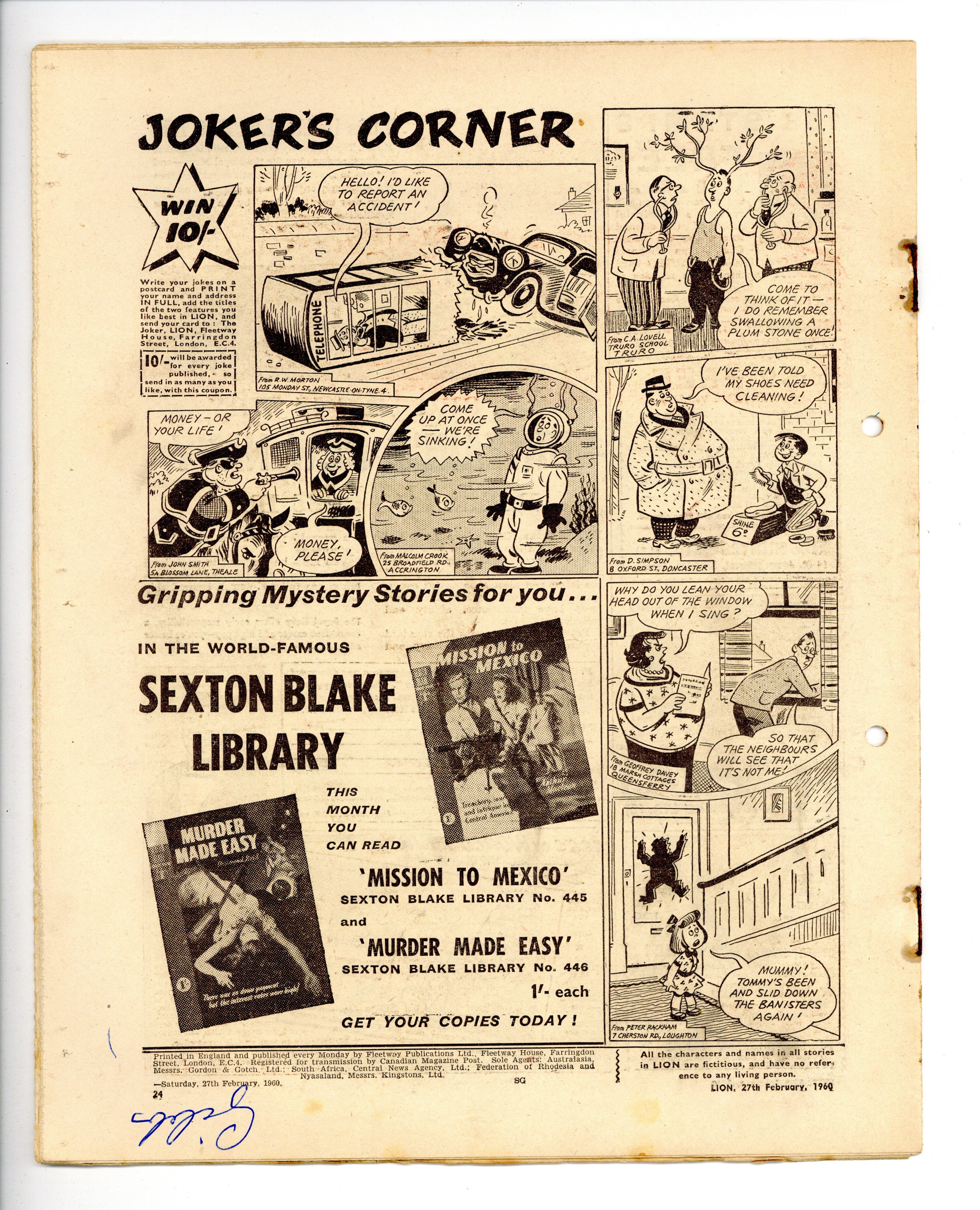 Published Feb 1960 by IPC Magazines.$2.65- Staple rust: Extensive.