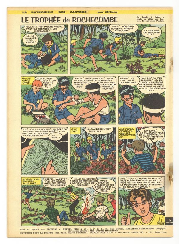 Published Oct 1958 by Editions J. Dupuis.$225.00- Cover and centerfold detached at one staple. Heavy staple rust/migration.
