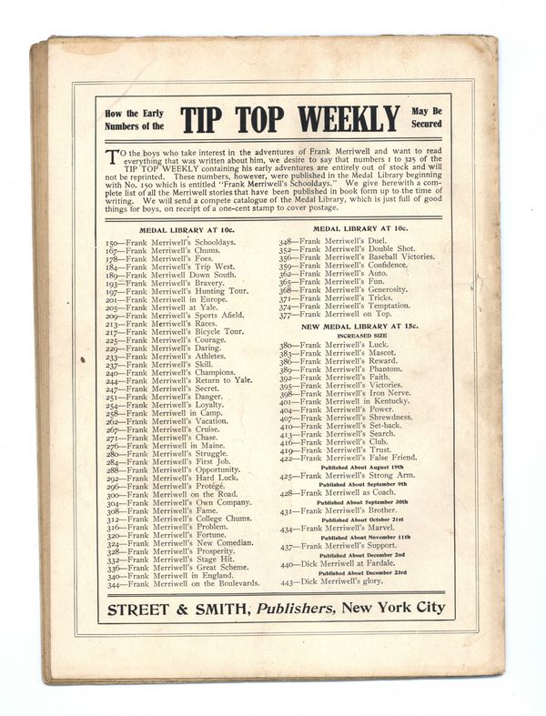 Tags: Pulp AdventurePublished Oct 1907 by Street & Smith.$12.50- Staple rust: Slight.