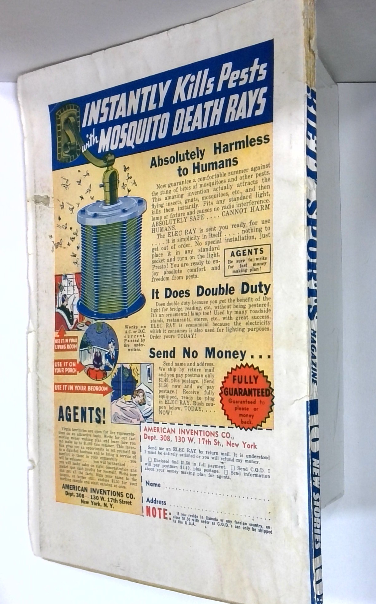 - Front cover detached 20%. Back cover detached 30%. Water damage: Slight. Staple rust: Slight.