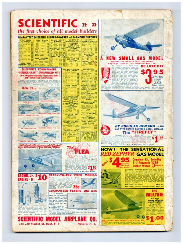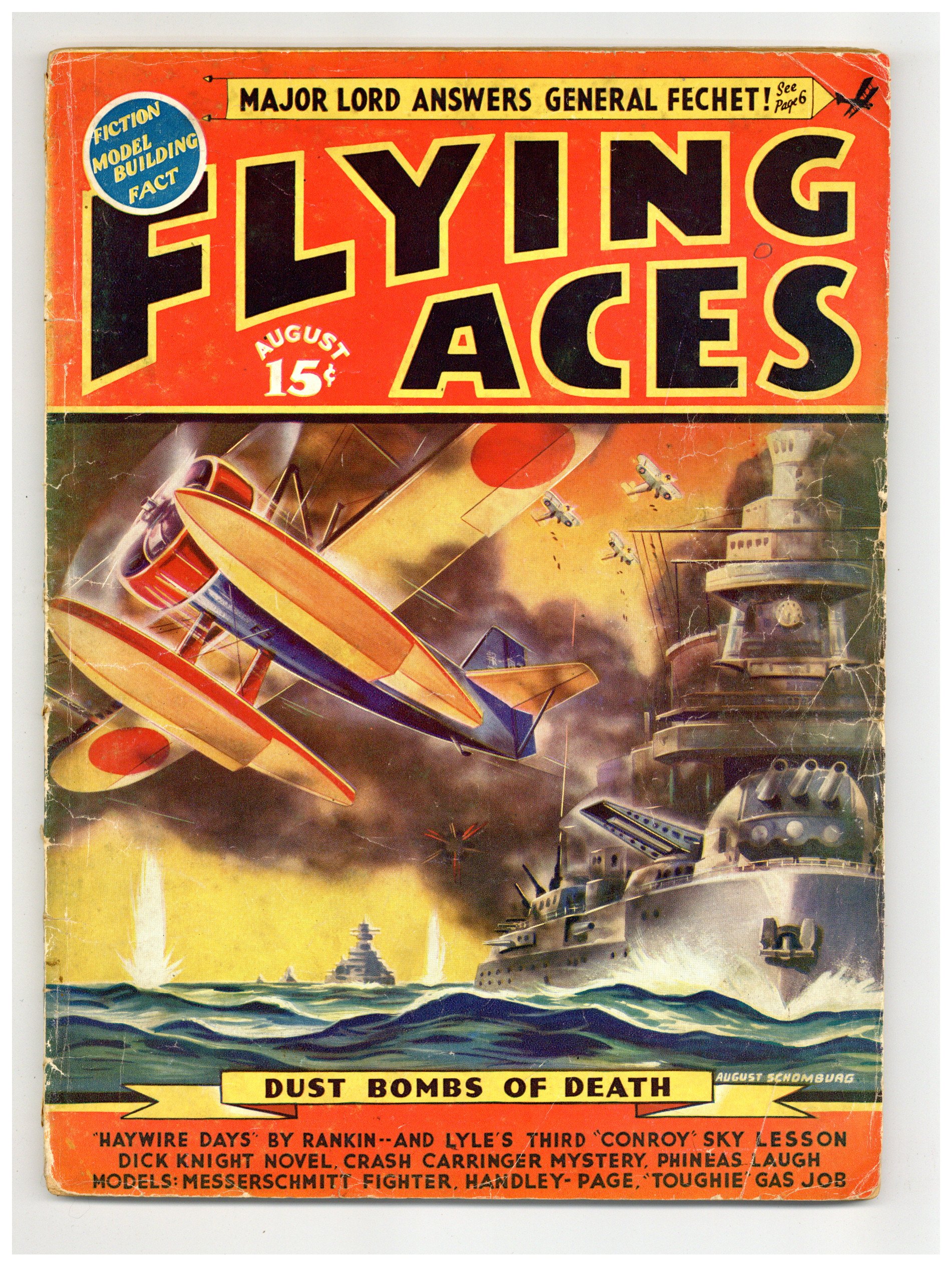 Tags: Pulp AdventurePublished Aug 1938 by Magazine Publishers.$15.50Volume 30, Issue 1 - August, 1938. Fiction, model-making articles, schematics, cartoons and factual essays about airplanes and aviation. Cover by August Schomburg. 8.5" x 11.5", 84 pages, B&W. Cover price $0.15.