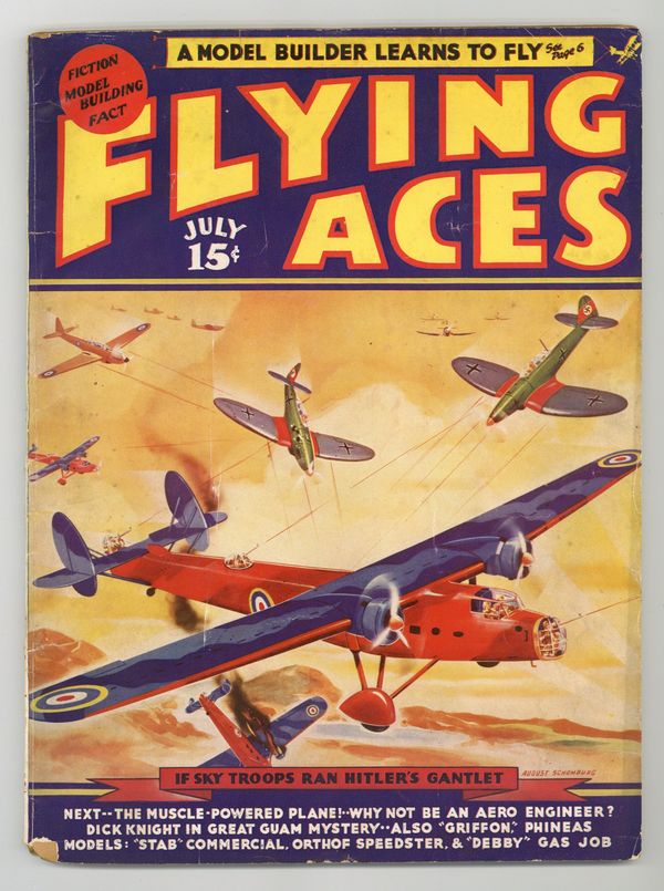 Tags: Pulp AdventurePublished Jul 1939 by Magazine Publishers.$10.00Volume 32, Issue - July, 1939. Cover by August Schomburg. Fiction, model-making articles, schematics, cartoons and factual essays about airplanes and aviation. Cover by August Schomburg. 8.5" x 11.5", 84 pages, B&W. Cover price $0.15.