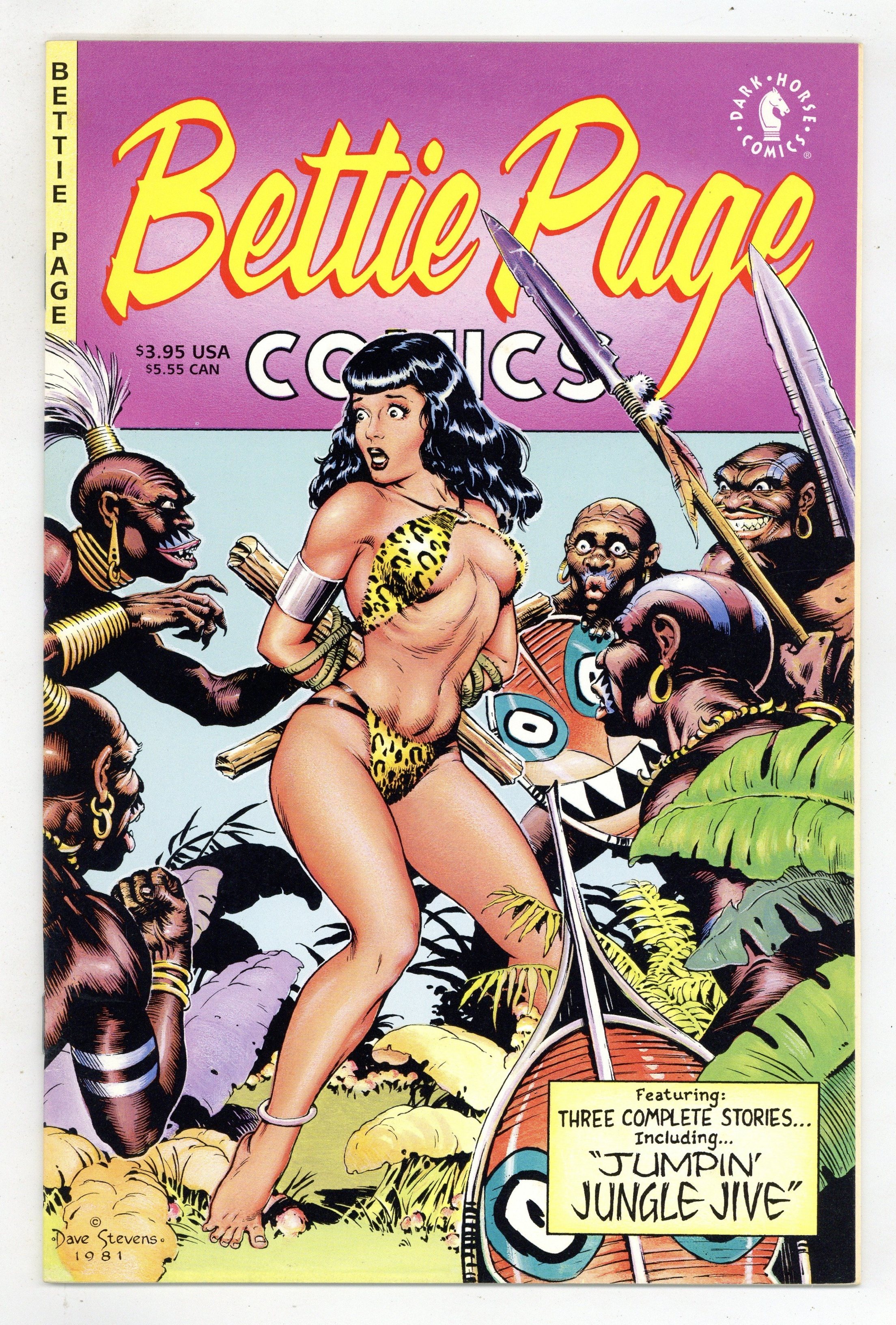 Published Mar 1996 by Dark Horse.$51.00Cover by Dave Stevens. Step right up, folks and pay attention! This is it! At long last, Bettie Page has given her blessing to this, her very first officially licensed comic book. And the man who's put it all together in this stunningly illustrated package: Dave Stevens, of course (need you ask?). Featuring three complete stories, Bettie's exploits take her from camera club misadventures to B-movie making, to meeting little green men in Central Park! FC. Cover price $3.95.