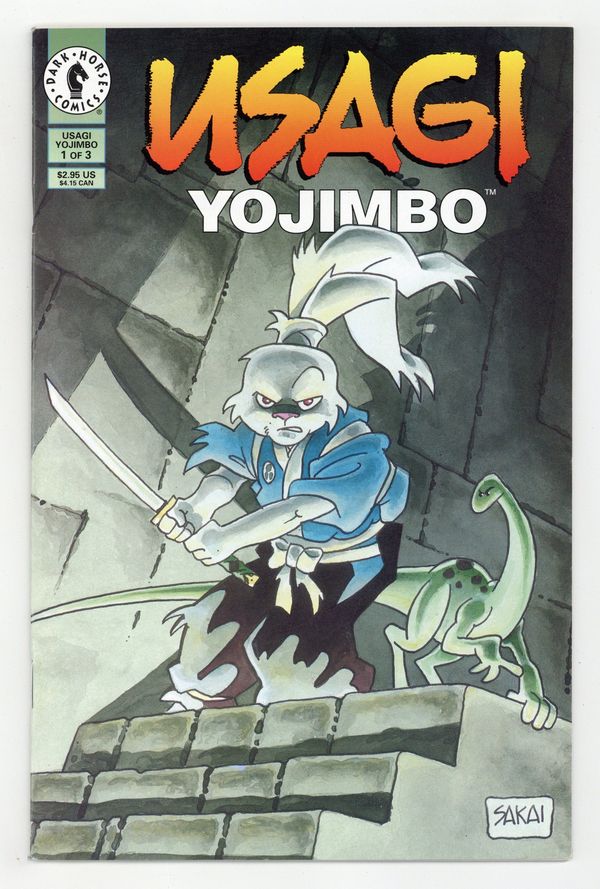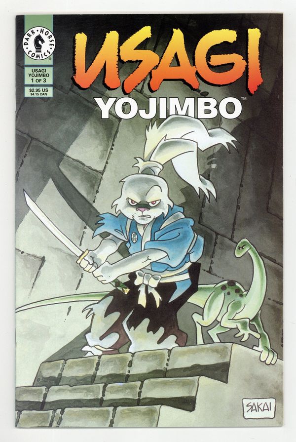 Published Apr 1996 by Dark Horse.$22.00Story and art by Stan Sakai. The close of sixteenth century Japan is regarded as the Age of Civil Wars, as feudal lords fought amongst themselves for land and power. When one leader finally rose above the others and was proclaimed Shogun, a peace came upon Japan and the samurai warriors found themselves suddenly unemployed. Many of these Ronin turned to banditry to survive, others found work with minor lords. And a small number traveled the musha shugyo -- the warrior pilgrimage -- to hone their spiritual and martial skills. But whether they took the honest road or the crooked path, the Ronin all found one common link -- they were generally less than welcome. Such is the tale of Usagi Yojimbo. 32 pages, B&W. Cover price $2.95.