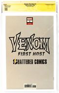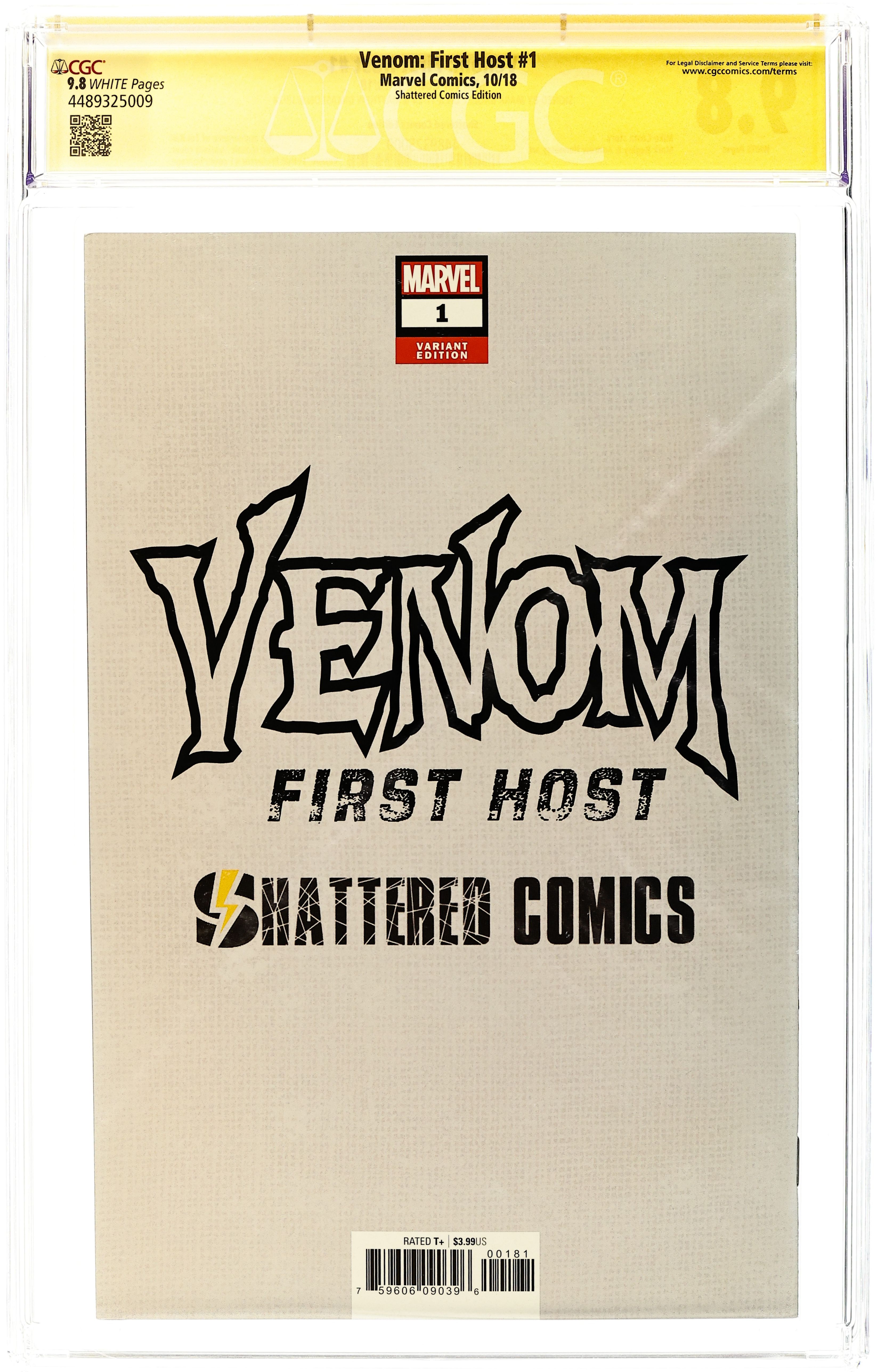 Shattered Comics exclusive variant by Matthew DiMasi. Written by Mike Costa. Art by Mark Bagley and Dono Sanchez-Almara. MIKE COSTA AND MARK BAGLEY REUNITE FOR A VENOM STORY UNLIKE ANY OTHER! Before the AMAZING SPIDER-MAN…before VENOM… There was the FIRST HOST. And that First Host has returned in need of Venom's help - only by reuniting can the two avert cosmic ruin! Can Eddie and the symbiote trust one another long enough to save the galaxy, or will the FIRST HOST prove to be Venom's undoing?! 28 pages, full color. Rated T+
