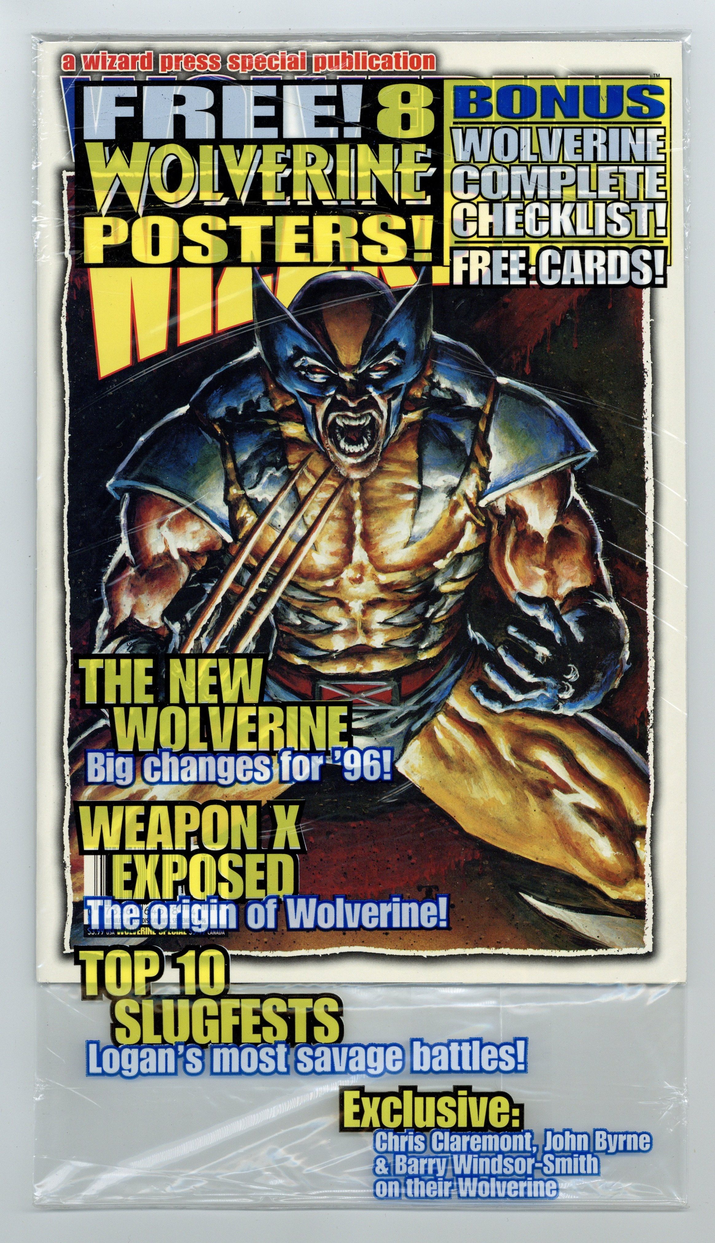$16.00Polybagged w/ cards. Wolverine: Wizard Tribute Edition - a Wizard Press Special Publication. The new Wolverine - big changes for '96; Weapon X exposed - the origin of Wolverine; Top 10 Slugfests - Logan's most savage battles; Chris Claremont, John Byrne and Barry Windsor-Smith on their Wolverine. Cover by Mark Texeira. Cover price $3.99.