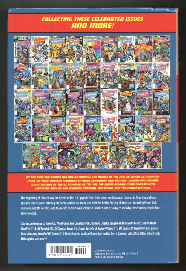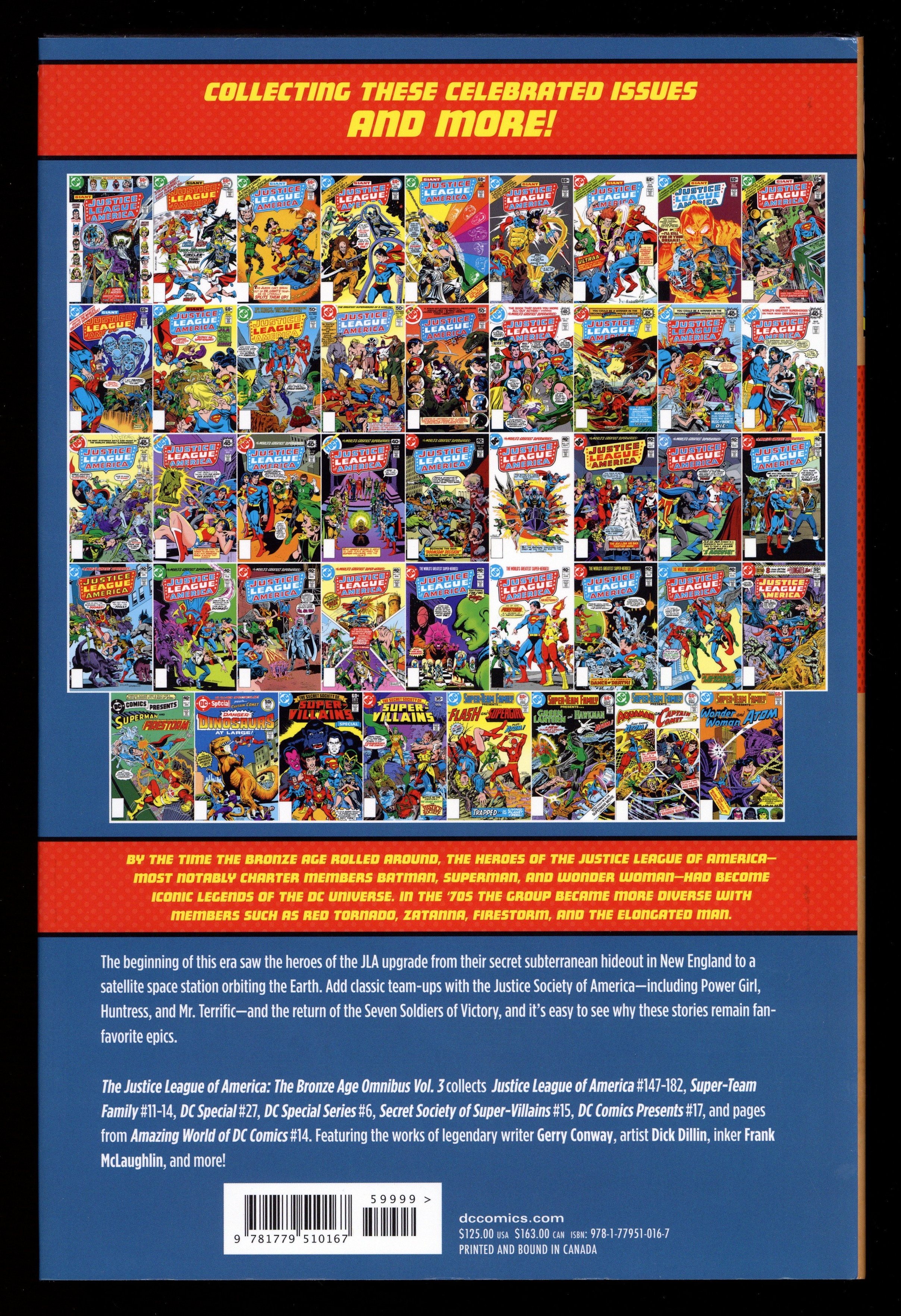 Volume 3 - 1st printing. Collects Justice League of America (1960-1987 1st Series) #147-182, Super-Team Family (1975-1978) #11-14, DC Special (1968-1977) #27, DC Special Series (1977-1981) #6, Secret Society of Super Villains (1976-1978) #15, DC Comics Presents (1978-1986 DC) #17, and pages from Amazing World of DC Comics (1974-1978) #14.
