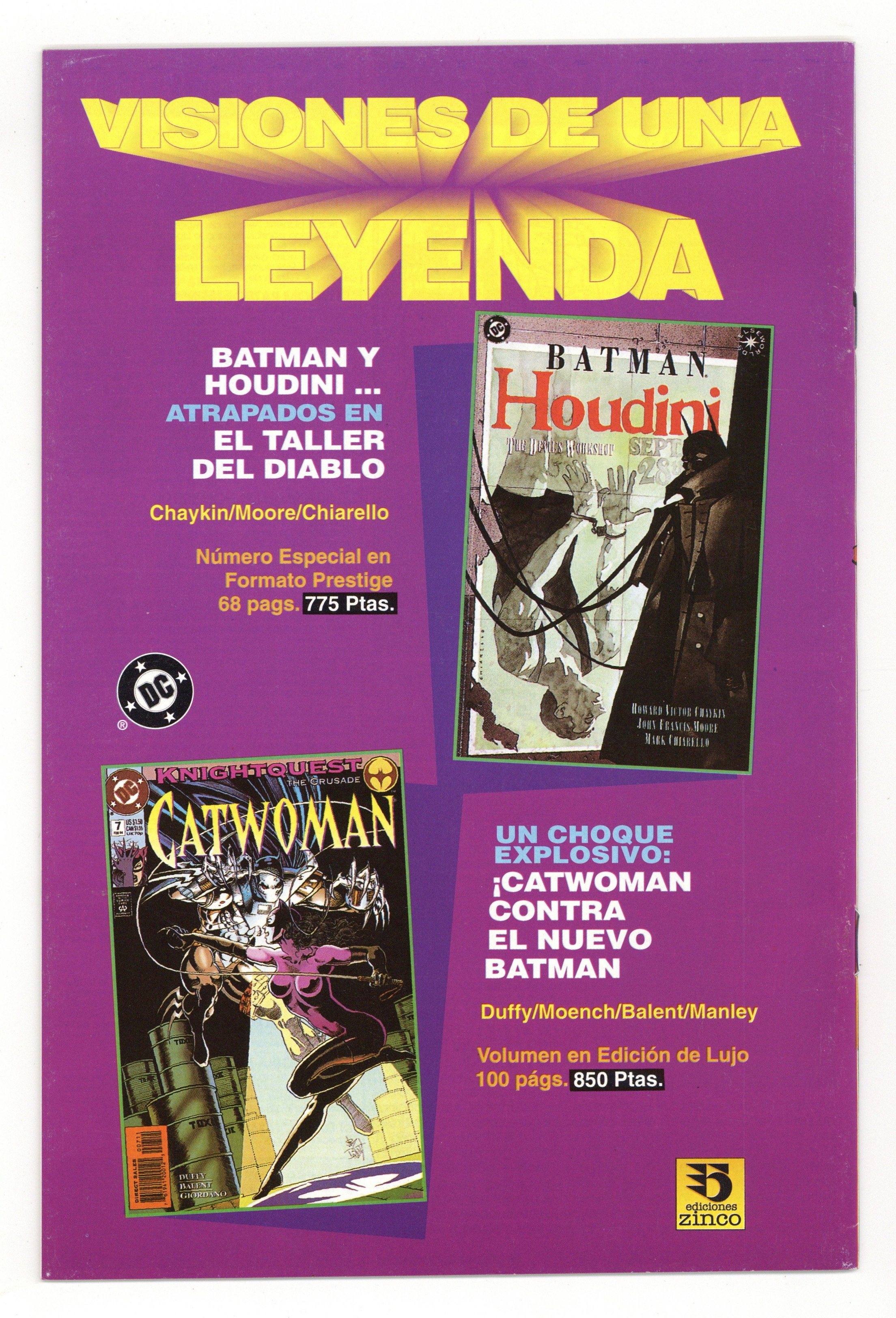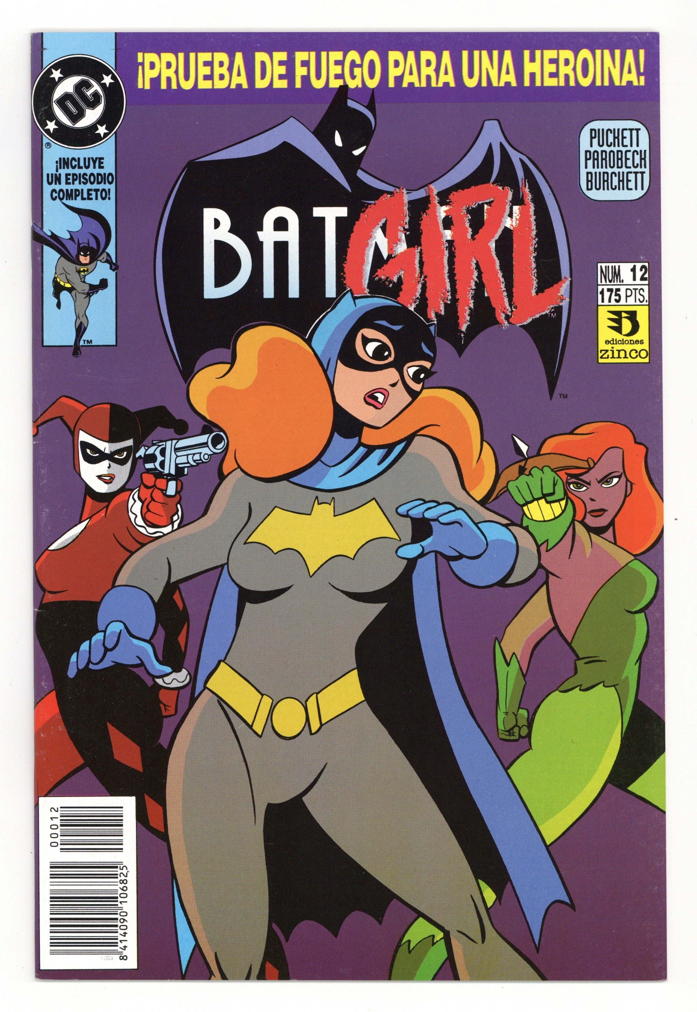 Reprints Batman Adventures #12 in Spanish. "Batgirl: Day One." Barbara Gordon attends a costume party dressed as Batgirl. Unfortunately, Poison Ivy and Harley Quinn also decide to show up. Based on Batman The Animated Series. Script by Kelley Puckett, pencils by Mike Parobeck, inks by Rick Burchett. Cover by Parobeck.