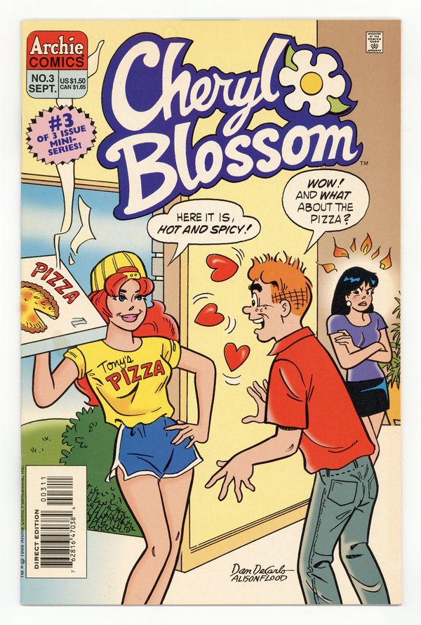 Tags: ArchiePublished Sep 1996 by Archie Publications.$12.00Cover pencils by Dan DeCarlo, inks by Alison Flood. "Take This Job and Love It!" Part 1, 2, 3, and 4, script by Dan Parent and Bill Golliher, pencils by Dan DeCarlo and Dan Parent, inks by Henry Scarpelli; Cheryl goes through a series of part time jobs: Mr. Lodge's Girl Friday, pizza delivery girl, saleswoman for men's clothes. Fan art page. "Last Dance Crossword" puzzle with Cheryl and Archie. 36 pgs., full color. Cover price $1.50.