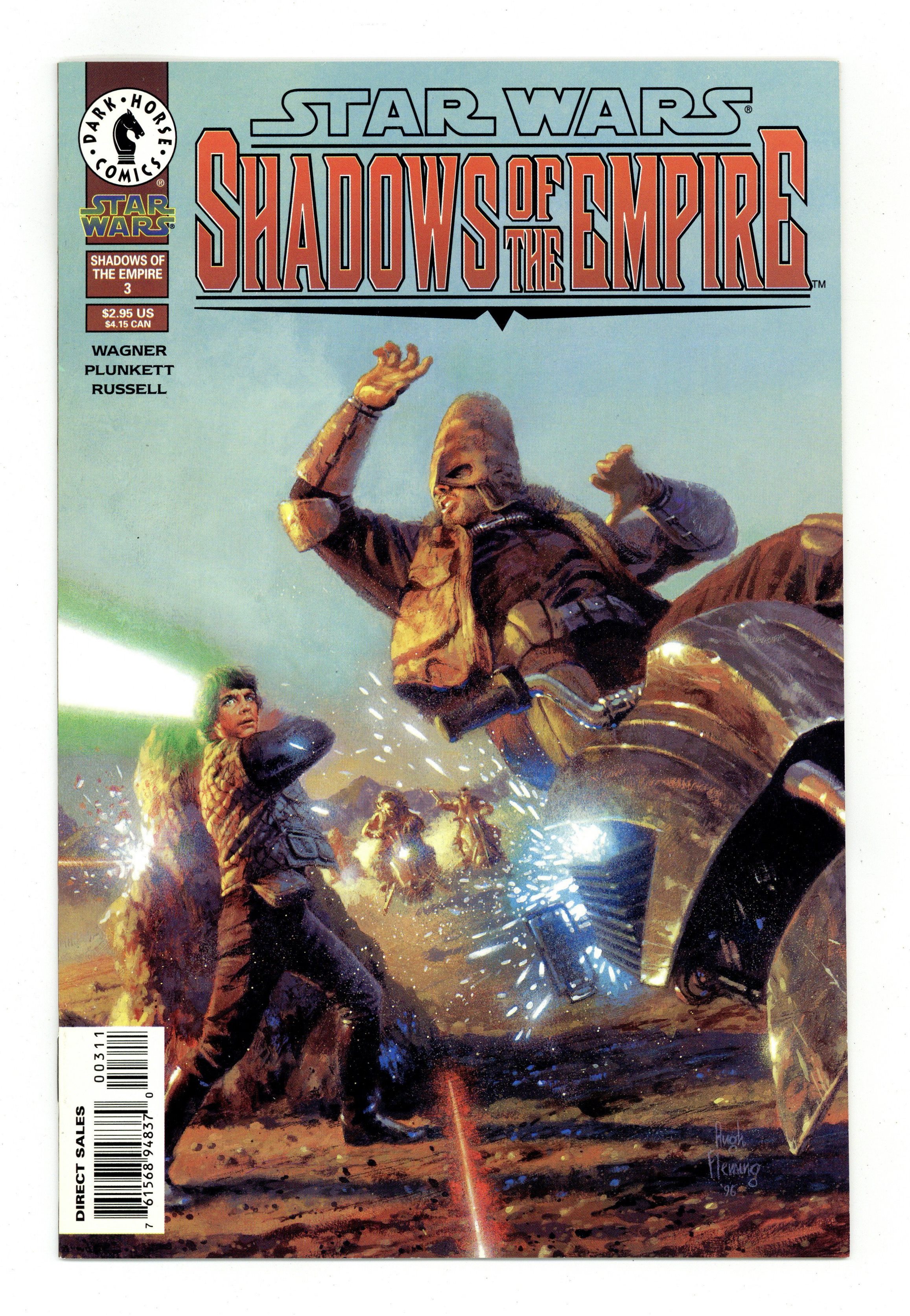 Tags: Star WarsPublished Jul 1996 by Dark Horse.$15.00Written by John Wagner. Art by Kilian Plunkett and P. Craig Russell. Cover by Hugh Fleming. They outnumber him and outgun him. By all rights, Luke Skywalker should be one dead Jedi-in-training, the target of a surprise attack by Jabba's swoop gang. But he's not . . . and even he isn't certain of the reason! 32 pages, FC. Cover price $2.95.
