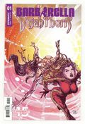 Written by Leah Williams. Art by German Garcia. Cover by Zach Hsieh. From opposite ends of time, two heroines unite for an otherworldly adventure! Barbarella, the siren of space, meets Dejah Thoris, Princess of Barsoom, and together they must solve a murder mystery that spans time and space in order to find their way home. Leah Williams (Adventure Time Comics, X-Men: Black) teams with Carlos Gomez (Red Sonja) for a fun, deadly, mind-bending epic! 32 pages, full color. Rated T+ Cover price $3.99.