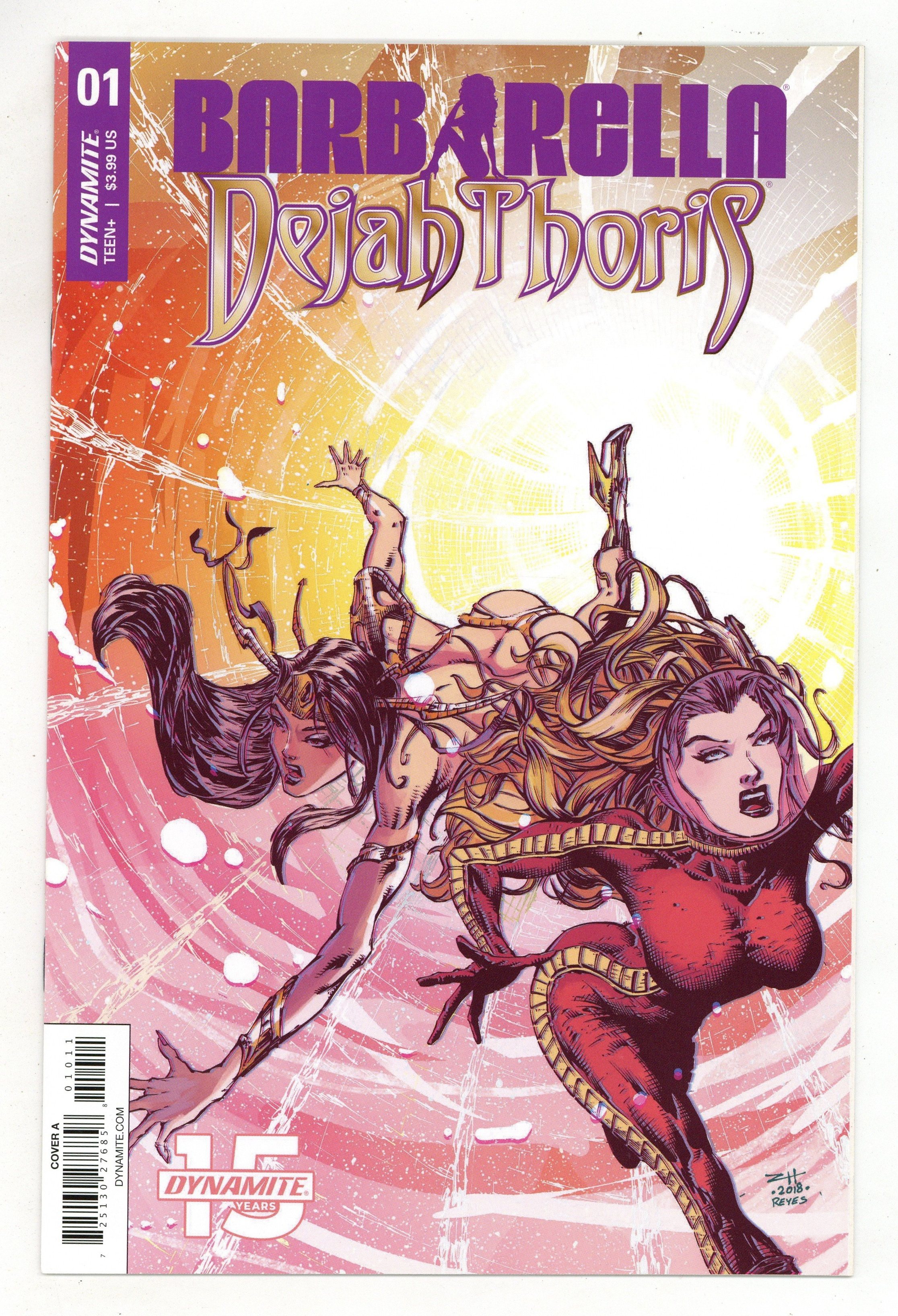 Published Jan 2019 by Dynamite Entertainment.$16.00Written by Leah Williams. Art by German Garcia. Cover by Zach Hsieh. From opposite ends of time, two heroines unite for an otherworldly adventure! Barbarella, the siren of space, meets Dejah Thoris, Princess of Barsoom, and together they must solve a murder mystery that spans time and space in order to find their way home. Leah Williams (Adventure Time Comics, X-Men: Black) teams with Carlos Gomez (Red Sonja) for a fun, deadly, mind-bending epic! 32 pages, full color. Rated T+ Cover price $3.99.