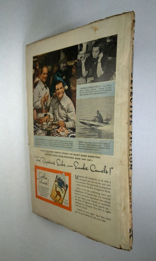 - Front cover detached 5%. Back cover detached 5%. Water damage: Moderate. Staple rust: Slight.