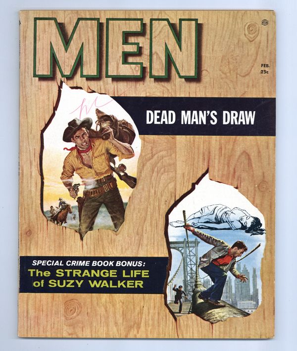 Published Feb 1956 by Zenith Publishing.$19.00Volume 5, Issue 2 - February, 1956. Cover by Jim Bentley and Mort Kunstler. Men's adventure magazine featuring articles on hunting, fitness, politics, true crime, and pin-up pictorials. 8 1/2-in. x 11-in. 82 pages. B&W. Cover price $0.25.