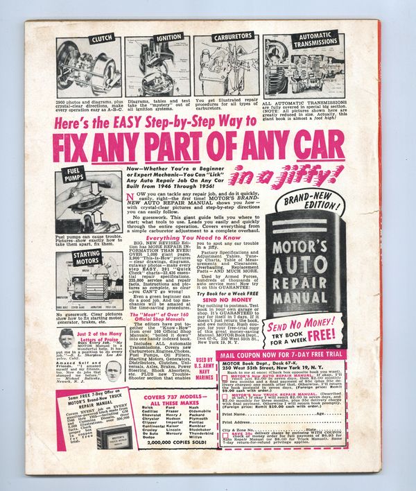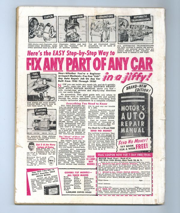 Published Oct 1956 by Zenith Publishing.$6.50- Front cover detached 10%. Cover Wrap Detached. Staple rust: Moderate.