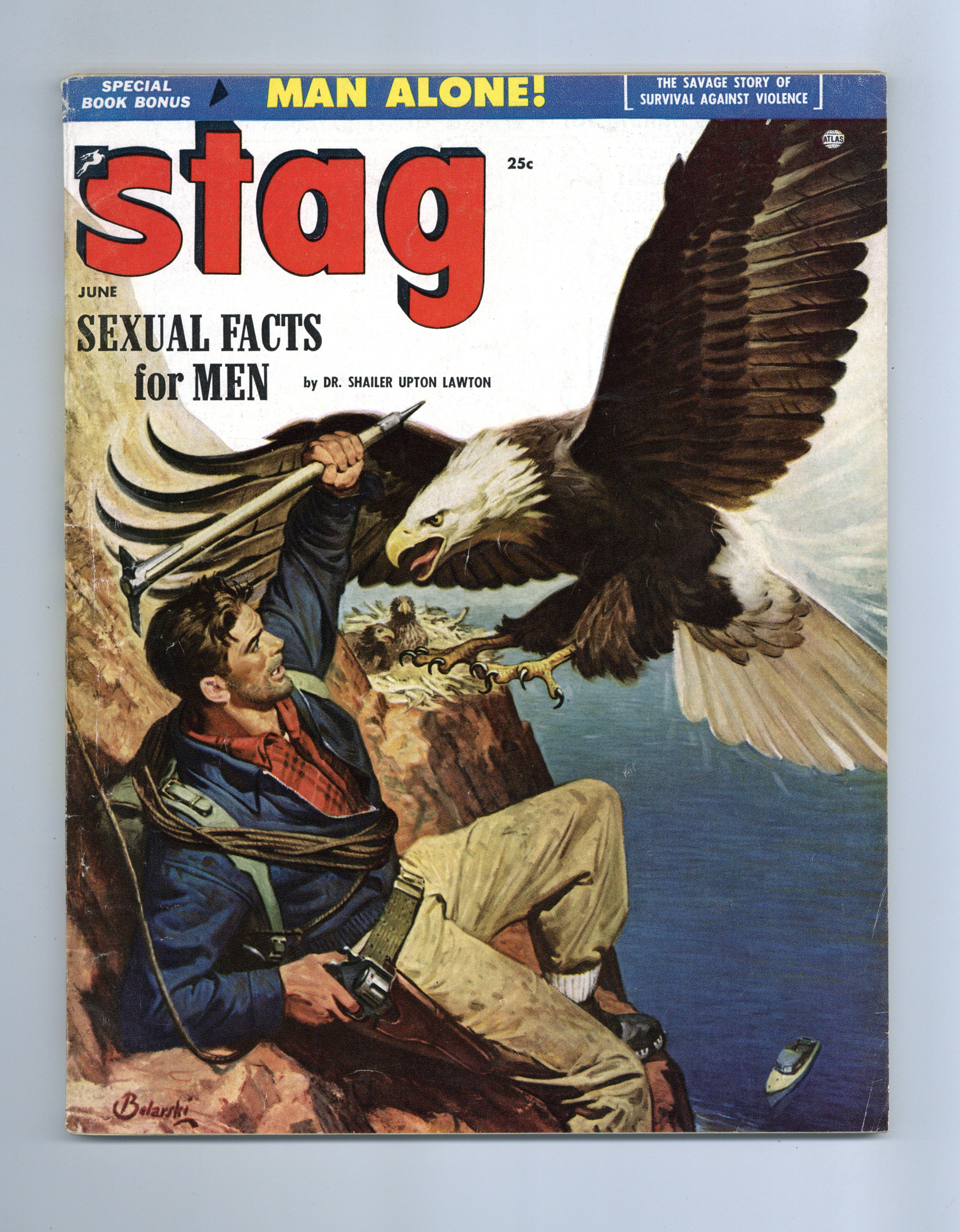Published Jun 1954 by Atlas Magazines, Inc..$146.00Volume 5, Issue 6 - June, 1954. Men's adventure magazine featuring articles on sports, hunting politics and crime. 8.5" x 10.5", 100 pages, B&W. Cover price $0.25.