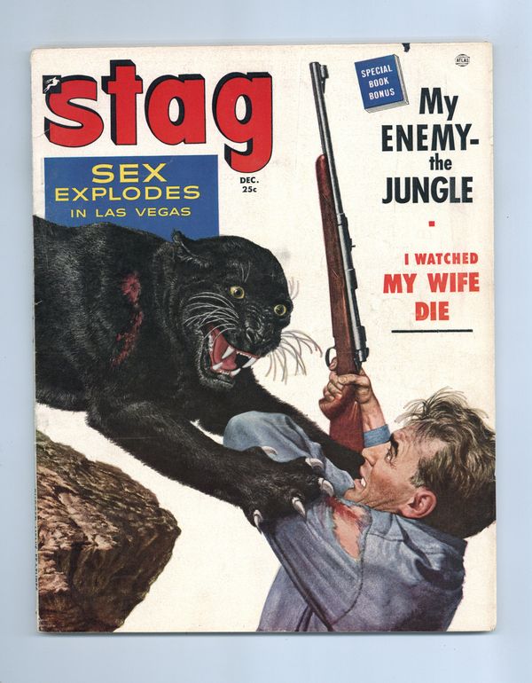 Published Dec 1954 by Atlas Magazines, Inc..$21.00Men's adventure magazine featuring articles on sports, hunting politics and crime. 10-in. x 13-in., 66 pages, B&W. Cover price $0.25.