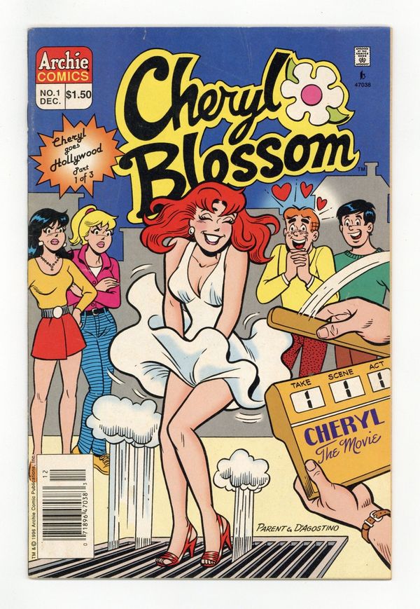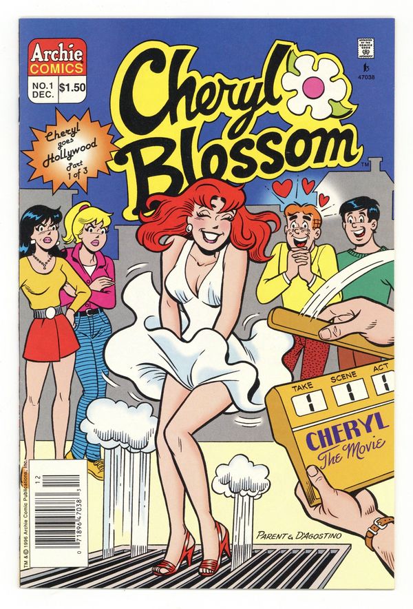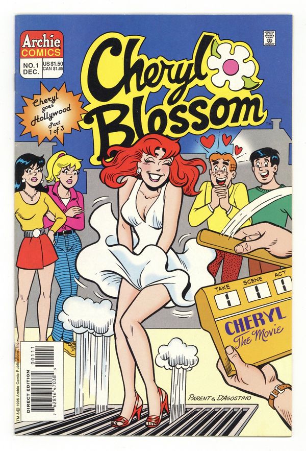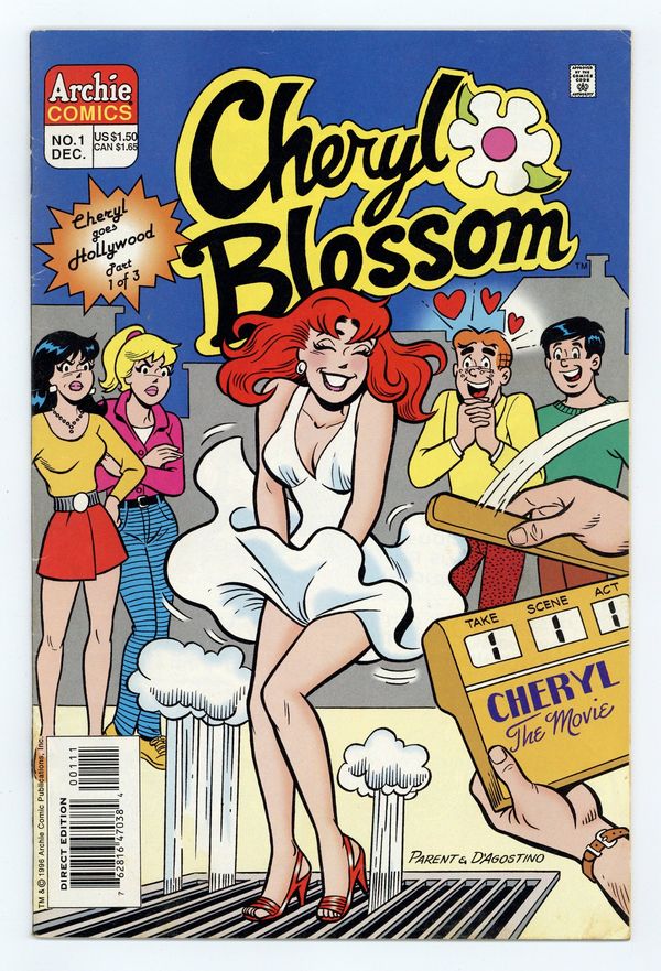 Cover pencils by Dan Parent, inks by Jon D'Agostino. "She Ought to Be in Pictures," script and pencils by Dan Parent, inks by Rudy Lapick; Cheryl gets bit by the fame bug and decides to make a movie about her life so she will get recognized as the next big Hollywood star; She recruits her Riverdale friends to help but drives them all crazy as she blunders through her faux documentary; Unfortunately, her rascally brother gets a hold of the embarrassing footage. Cheryl Hollywood Style pinup, pencils by Dan Parent, inks by Rudy Lapick. 36 pgs., full color. $1.50. Cover price $1.50.
