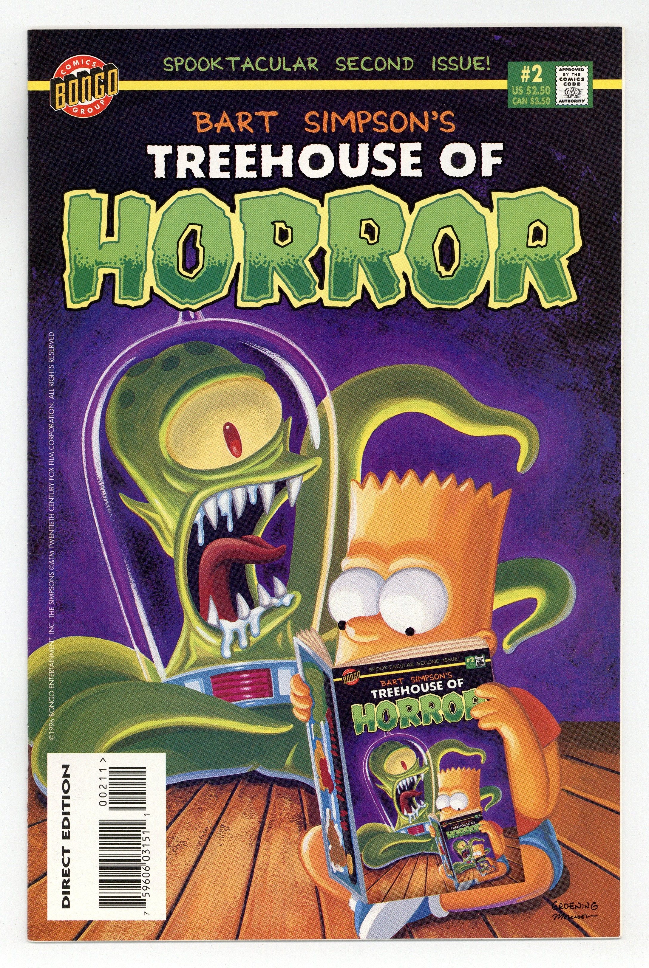 $23.00Written by Paul dini. Art by Bill Morrison and Tim Bavington. Cover by Bill Morrison. Sideshow Bob is transformed into a horrendous blob who wants to destroy all of Springfield. Written by Peter Bagge. Art by Stephanie Gladden and Tim Bavington. Lisa is possessed by the spirit of the pop star Madonna and Marge is desperate for help. Peter Bagge comments on not being able to watch horror movies. Based on The Simpsons TV show. 52 pages, full color. $2.50. Cover price $2.50.