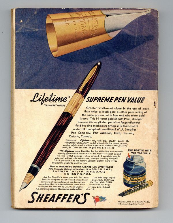 Published Dec 1944 by Street & Smith.$85.00- Front cover detached 25%. Back cover detached 10%. Water damage: Slight. Staple rust: Slight.