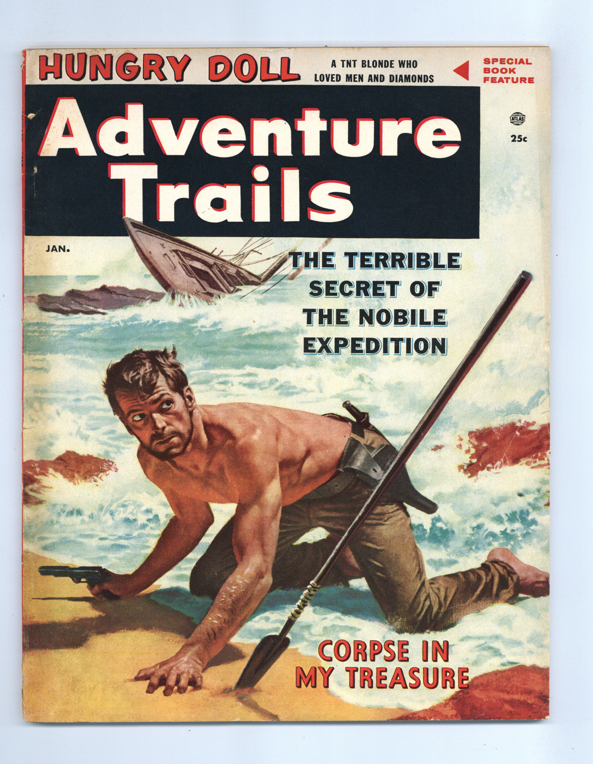 Published Jan 1957 by Vista Publications.$32.00Vol. 1, No. 1 - January 1957. Stories of adventure plus a pictorial. 8 1/2-in. x 11-in., 84 pages, B&W. MATURE. Cover price $0.25.