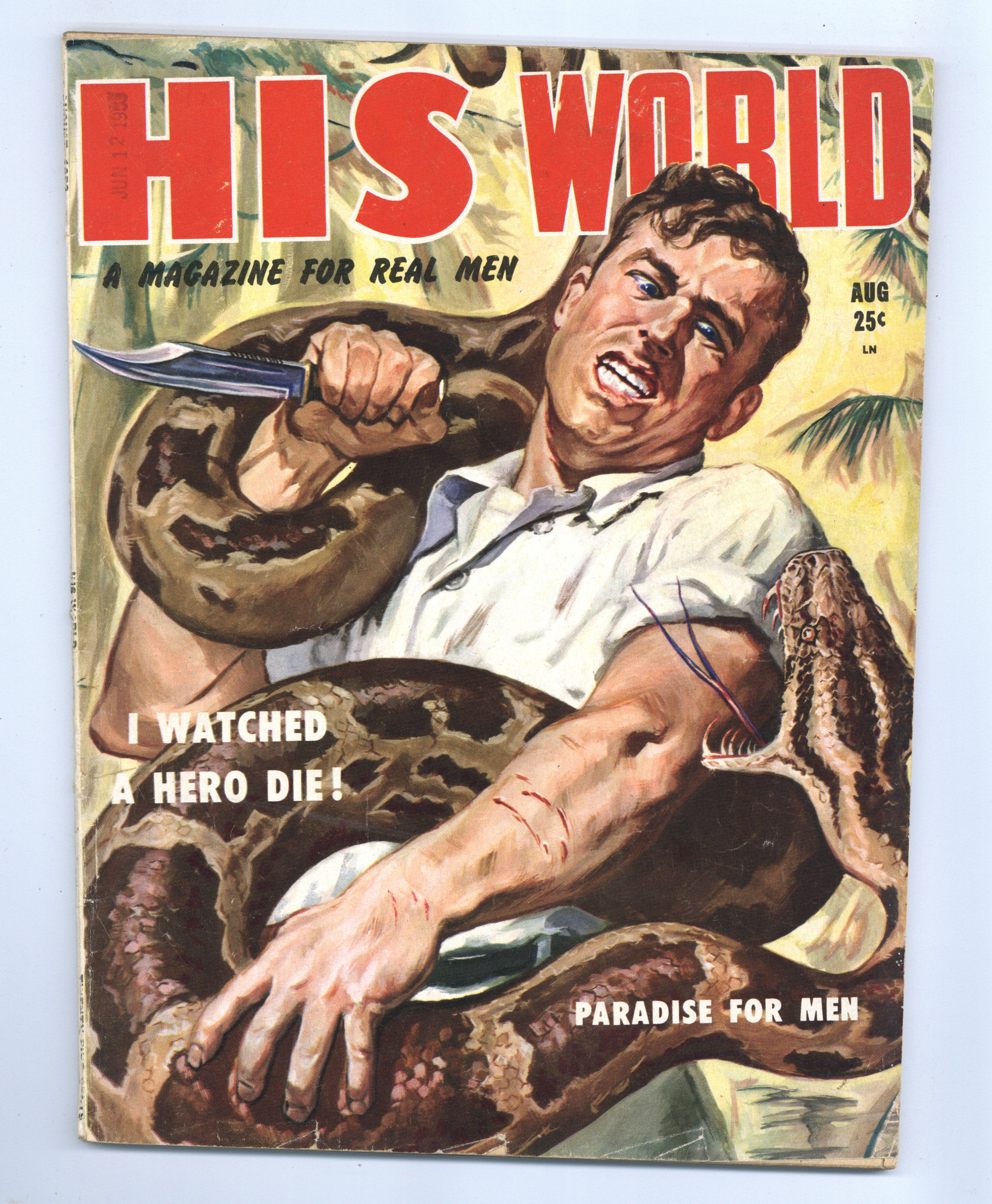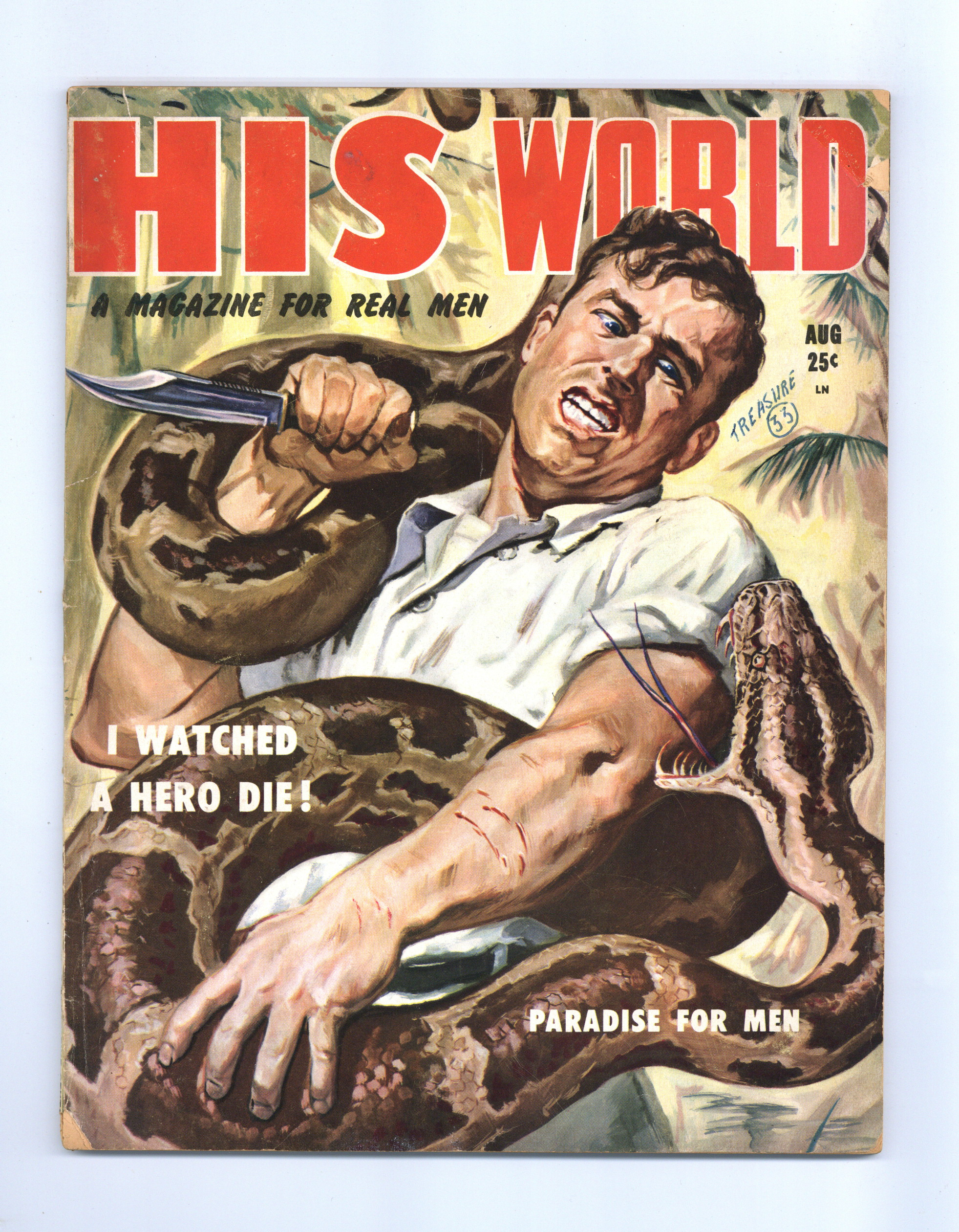 Vol. 1, No. 3. August 1953. Men's adventure magazine. Articles, fiction, and humor. 8.25" x 11". 74 pages. Black and white. Cover price $0.25.