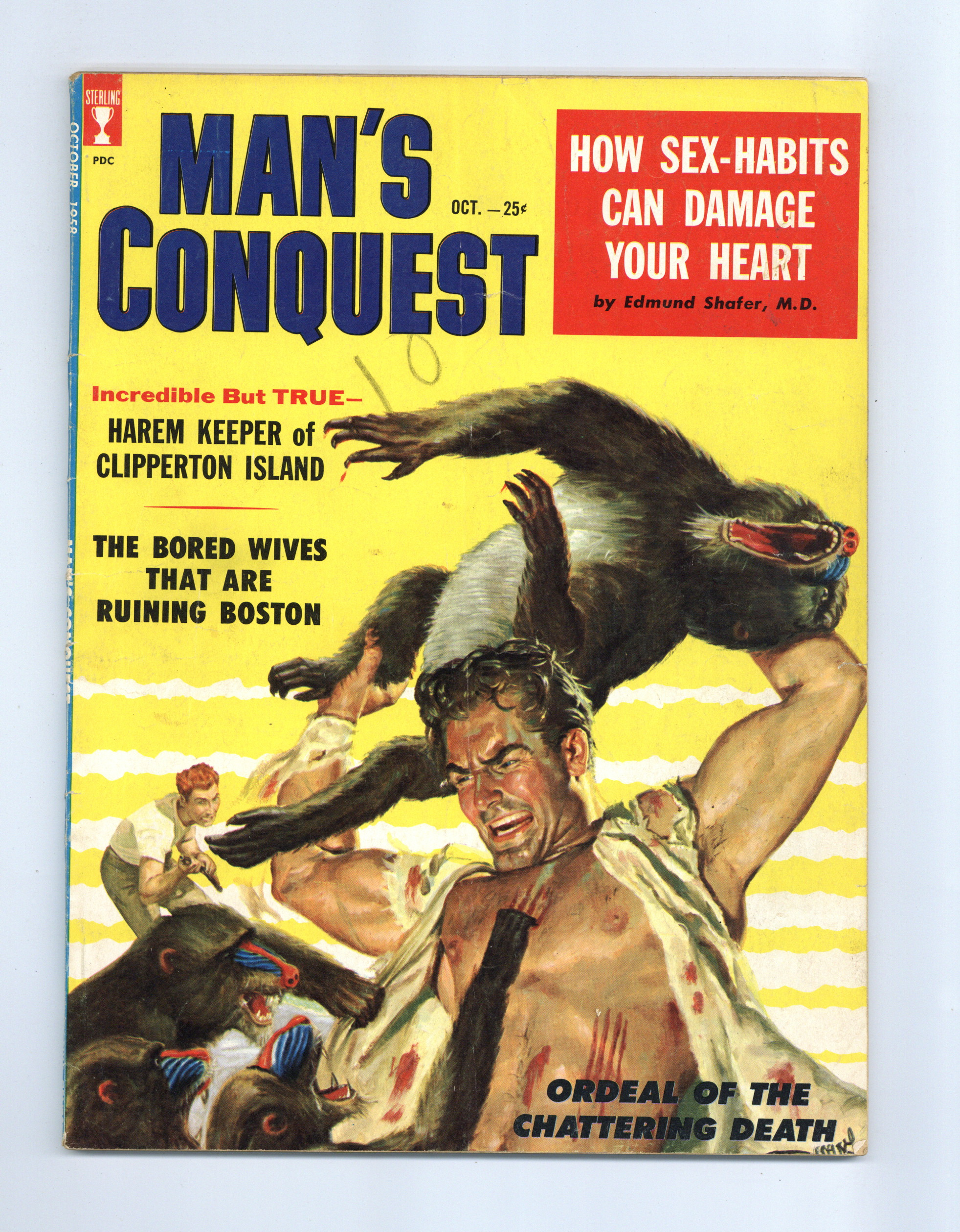 Published Oct 1958 by Hanro Corp..$44.00Men's adventure magazine featuring articles, stories, and pictorials. Cover price $0.25.