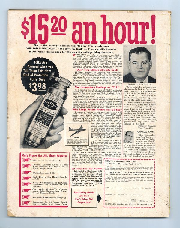 Published Aug 1955 by Newsstand Publications.$29.00- Front cover detached 20%. Back cover detached 15%. Water damage: Moderate. Staple rust: Slight.