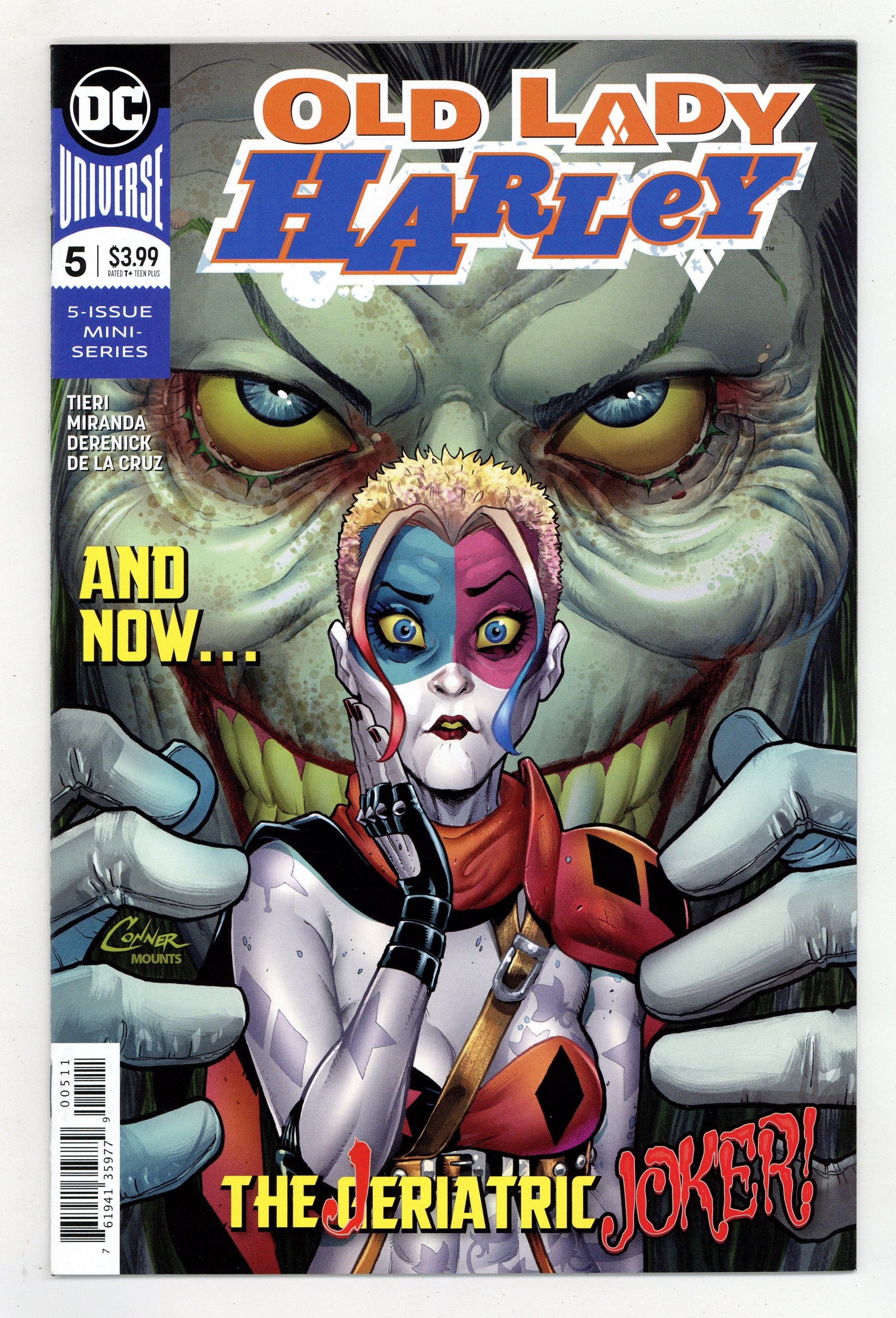 Tags: Harley Quinn$21.50Written by Frank Tieri. Art by Inaki Miranda. Cover by Amanda Conner. Harley's worst nightmare has come true: The Joker is reborn! But is there one more card to turn over? Is the killer behind that smile the man she loved, hated, loved and lost...or something even more deadly and devastating? Harley's future world will be torn apart in this issue-don't miss it! 32 pages, full color. Rated T+ Cover price $3.99.