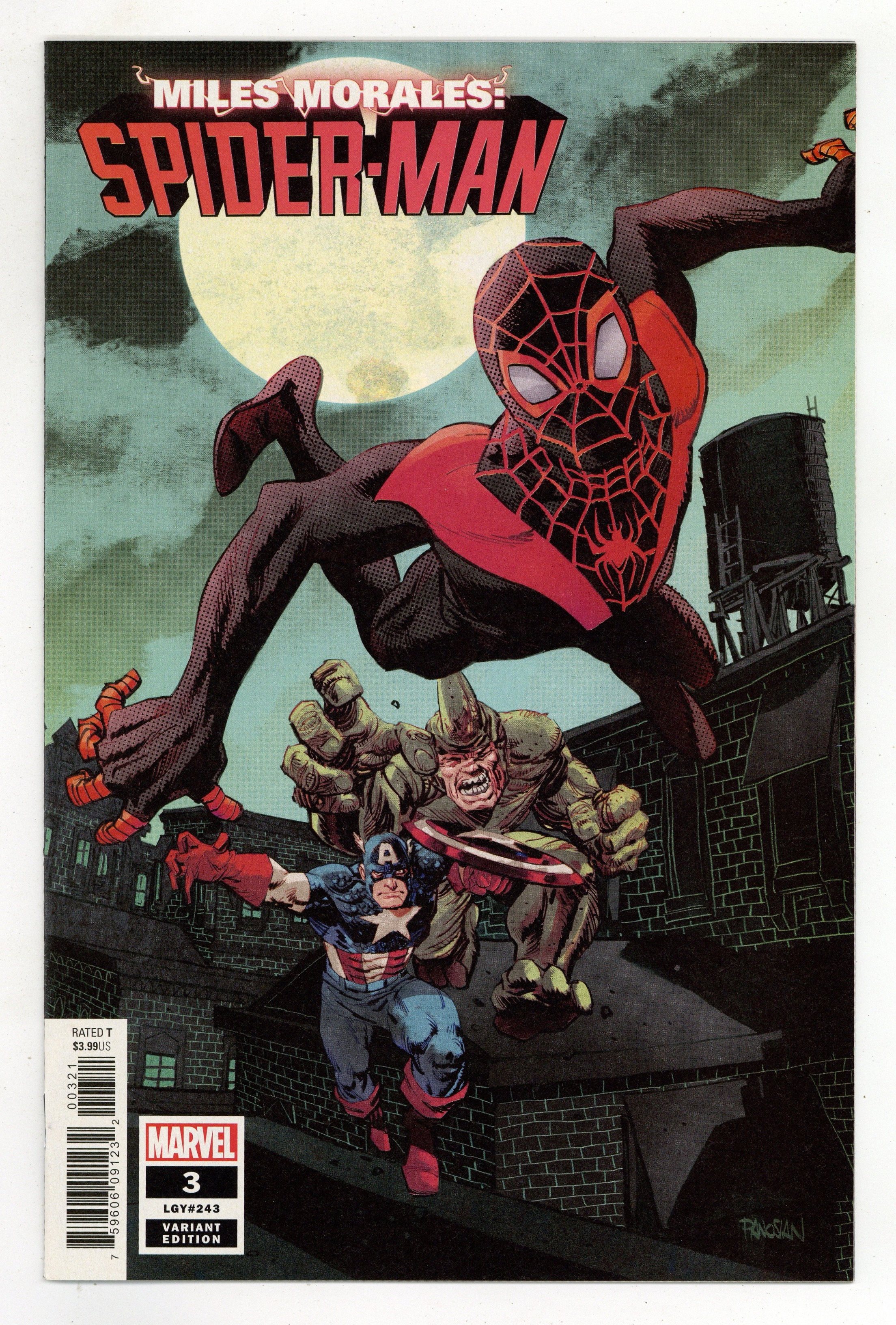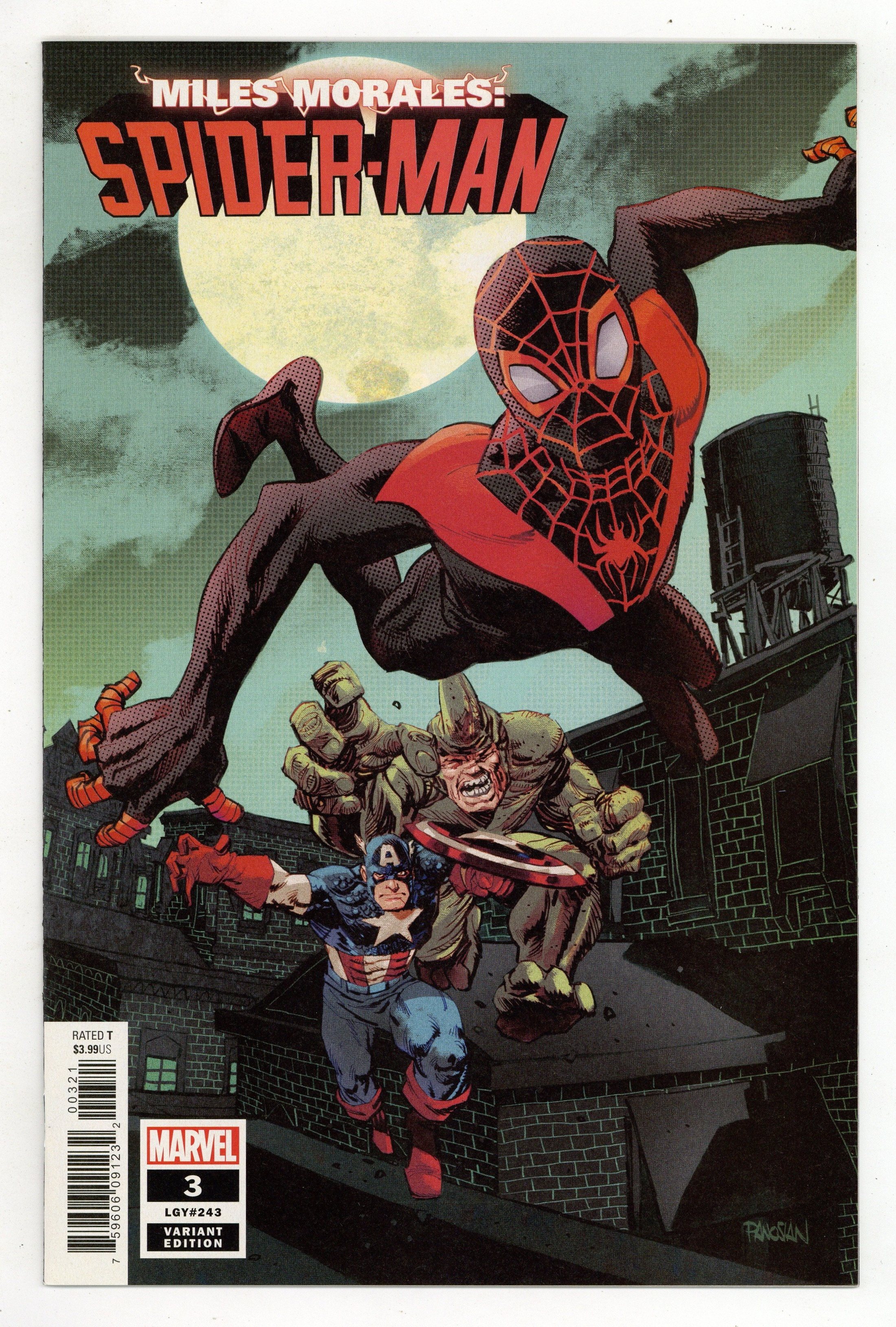 $30.00Limited 1 for 50 Retailer Incentive Variant Cover. Written by Saladin Ahmed. Art by Javi Garron. Cover by Dan Panosian. CAPTAIN AMERICA guest-stars! Miles and Cap try to get to the bottom of the mystery of the missing kids, but it's not quite that simple. A new villain has our heroes' number, and you won't believe how they get out of this jam! 28 pages, full color. Rated T+ Cover price $3.99.