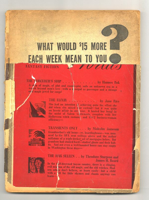 Published Dec 1942 by Street & Smith.$50.00- Back cover detached 5%. Water damage: Moderate.