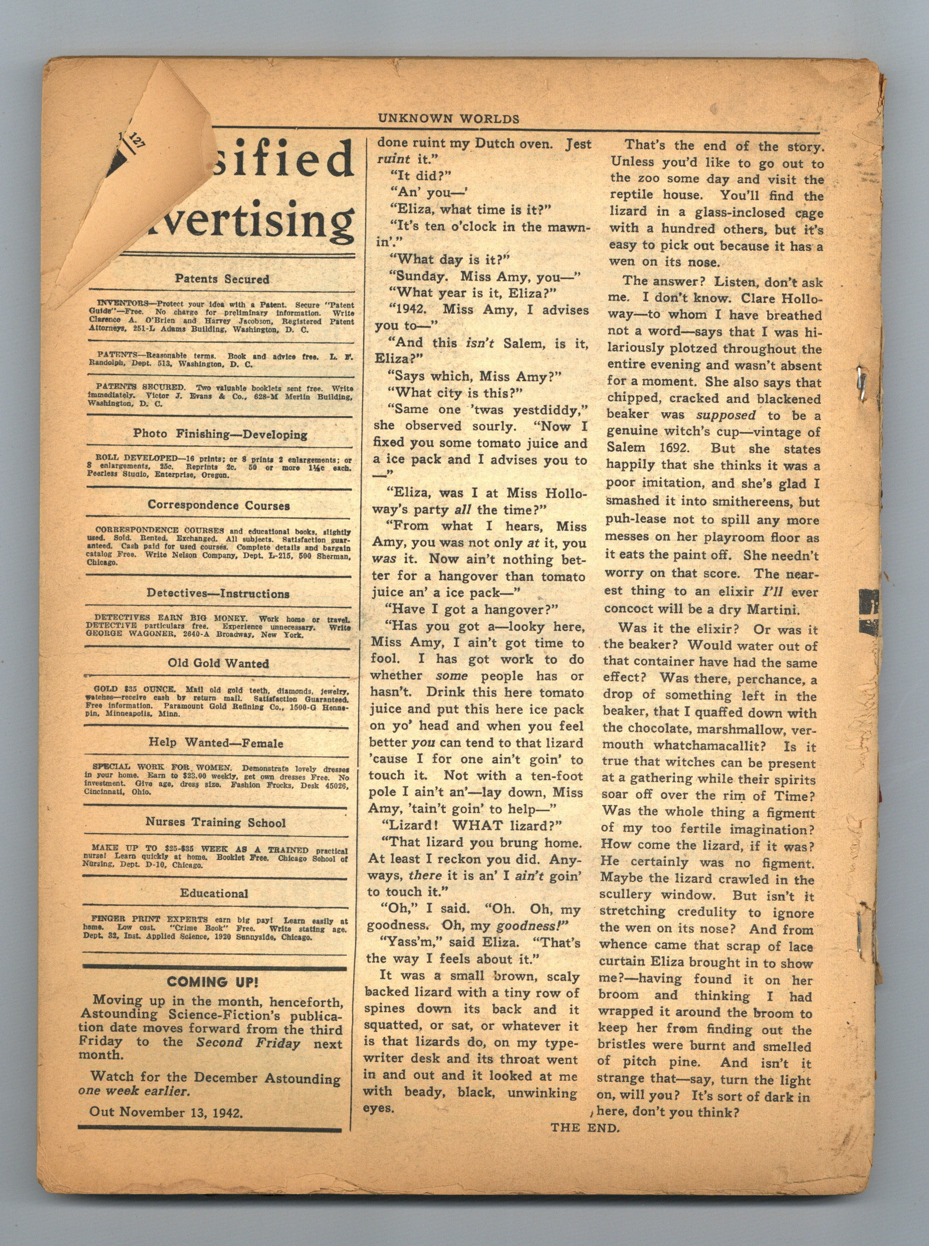 Published Dec 1942 by Street & Smith.$5.00- Front cover detached 90%. Back cover detached 90%. No Back Cover, Front Cover Detached. Incomplete, See Notes.
