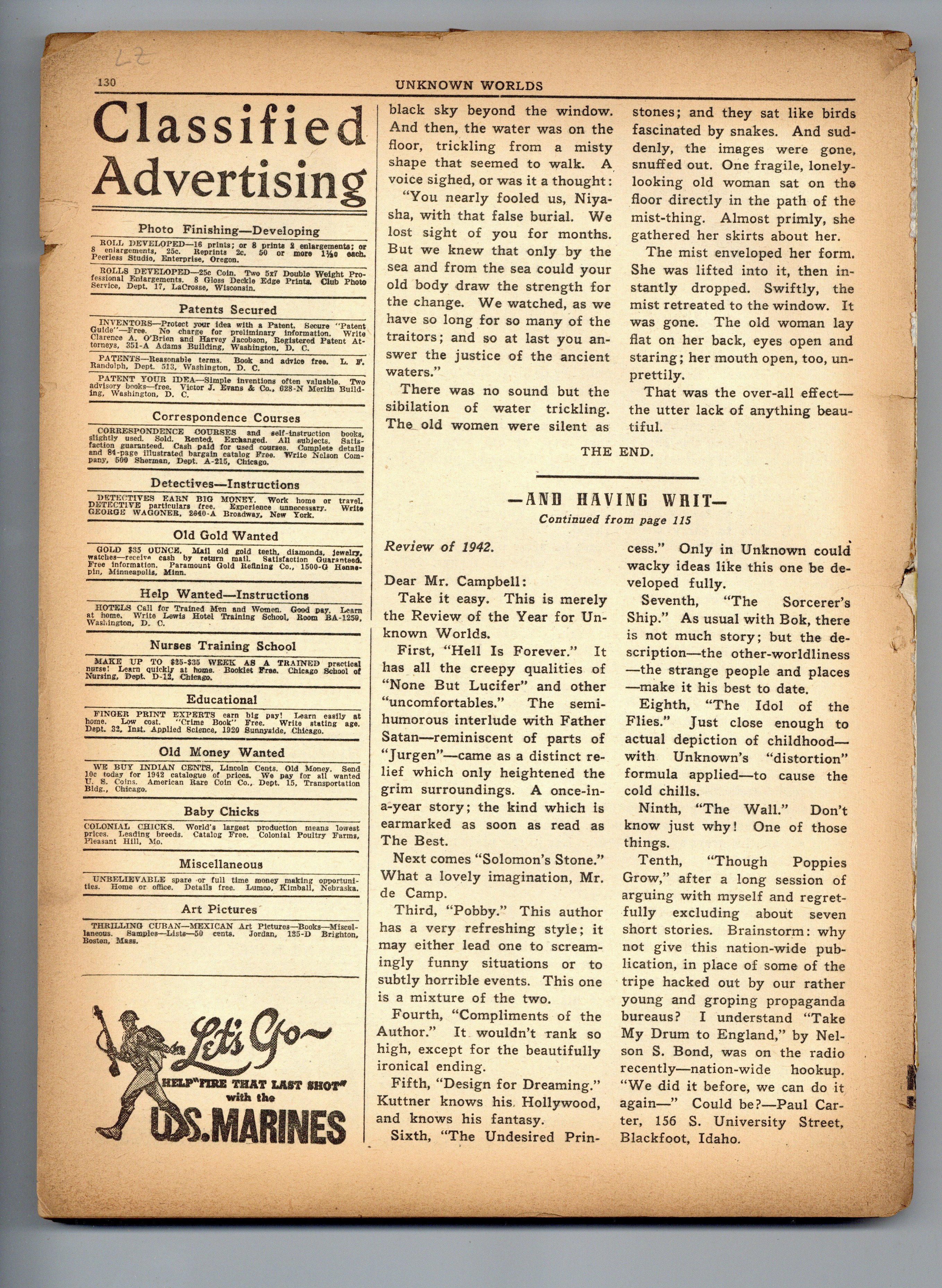 Published Feb 1943 by Street & Smith.$20.00- Front cover detached 40%. Back cover detached 5%.