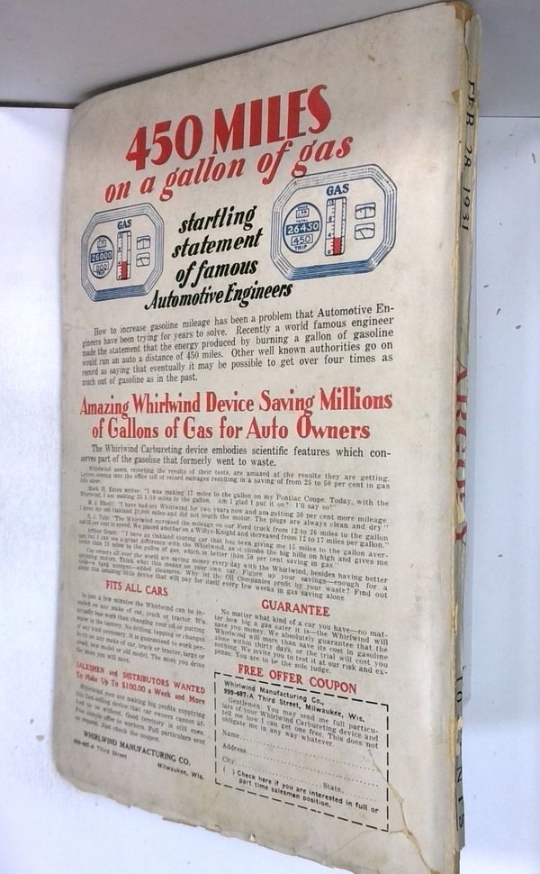 Vol. 219, No. 2 - February 28, 1931. 6.75" x 9.75", 144 pages, B&W. Cover price $0.10.