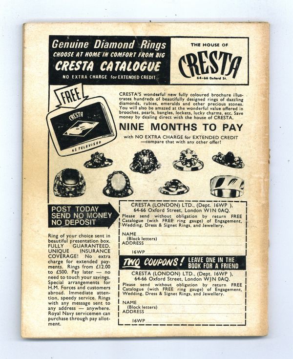 Published 1974 (est.) by IPC/Fleetway.$2.65- Front cover detached 40%. Back cover detached 50%. Water damage: Slight. Staple rust: Slight.