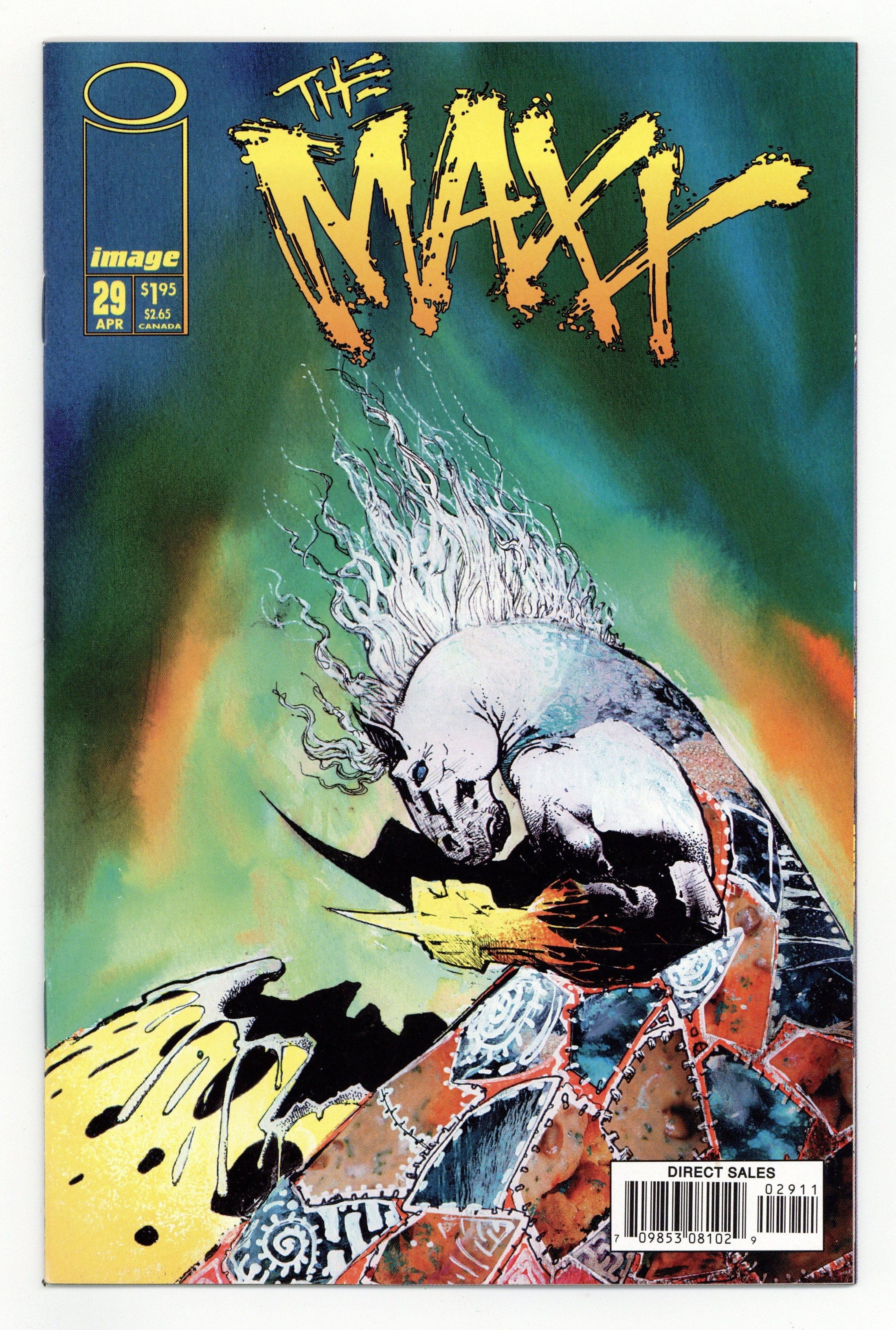 $24.00Written by Sam Kieth. Art by Sam Kieth and Jim Sinclair. Cover by Sam Kieth. Untitled story; Sara's Maxx destroys Iago; Julie is sent back to the real world; Sara gets released; Artie tries to help Sara heal her Outback, but Saras spirit leaves this earth; In the real world, Saras power overloads; Artie gives Dave his old Maxx costume. 36 pgs., full color. $1.95. Cover price $1.95.
