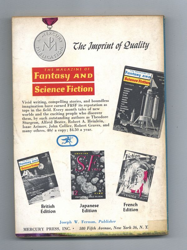 Tags: Anthology / CollectionPublished May 1961 by Mercury Publications.$3.20- Water damage: Slight.