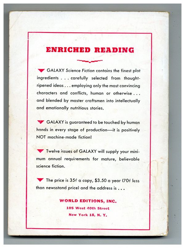 Published Jul 1951 by Galaxy Publications.$11.00- Water damage: Slight.