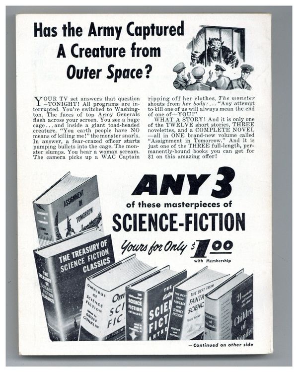 Published Jun 1955 by Galaxy Publications.$2.65- Front cover detached 15%. Back cover detached 15%. Water damage: Extensive. Staple rust: Moderate.