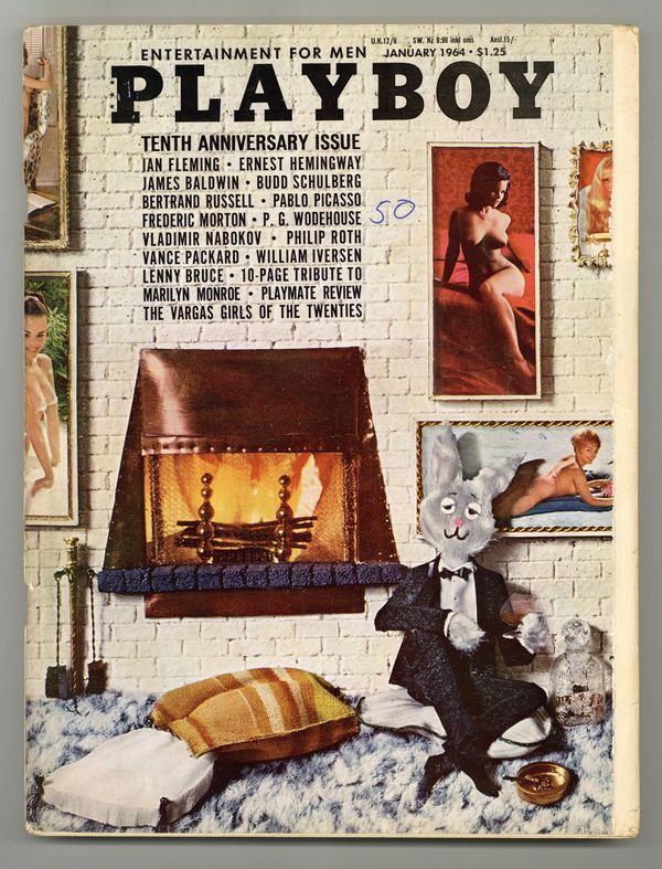 The world's longest running men's magazine, featuring advice columns, pictorials, illustrations and humor. In this tenth anniversary issue: Playbill; Dear Playboy; Playboy After Hours; The Playboy Advisor; Playboy's International Datebook - travel by Patrick Chase; Playboy Interview: Vladimir Nabokov - candid conversation; The Playboy Forum; The Playboy Philosophy - editorial by Hugh M. Hefner; How to Talk Dirty and Influence People - autobiography by Lenny Bruce; Silverstein's History of Playboy - humor by Shel Silverstein; An Actor's Life for Me - fiction by Philip Roth; A Short History of Toasts and Toasting - article by William Iversen; Here's How - toasts; ...and Here's How - drinks by Thomas Mario; The Property of a Lady - fiction by Ian Fleming; The Hosting Jacket - attire by Robert L. Green; The Wisdom of Pablo Picasso - credo by Pablo Picasso; Marilyn Monroe Remembered - pictorial essay; The Boy Allies - satire by Larry Siegel; The Festive Fondue - food by Thomas Mario; On Being a Managerial Misfit - article by Vance Packard; The Conflicting Ideologies of East & West - opinion by Bertrand Russell; Retroactive New Year's Resolutions - humor; Triple Treat - Playboy's Playmate of the Month; Playboy's Party Jokes - humor; The Uses of the Blues - soliloquy by James Baldwin; The Vargas Girl Circa 1920 - nostalgia by Alberto Vargas; The Very Acme of Romantic Love - allegory by Wolf Mankowitz; Fun and Games - entertainment; Fox Hunting: Who Needs It? - humor by P.G. Wodehouse; The Death of Boxing? - article by Budd Schulberg; Advice to a Young Man - aphorisms by Ernest Hemingway; The Homecoming - fiction by Frederic Morton; Word Play - satire by Robert Carola; Playboy's Playmate Review - pictorial; The Most Remarkable Dream - ribald classic; Gidget Goes Teevee Jeebies - satire; The Eleventh-Hour Santa - gifts; The Hanger-On - satire by Jules Feiffer; The Playboy Art Gallery: American Gothic - humor by Jim Beaman; and Little Annie Fanny - satire by Harvey Kurtzman and Will Elder. 8 1/2-in. x 11-in., PC/PB&W. Mature Readers Cover price $1.25.